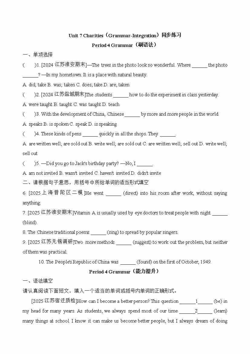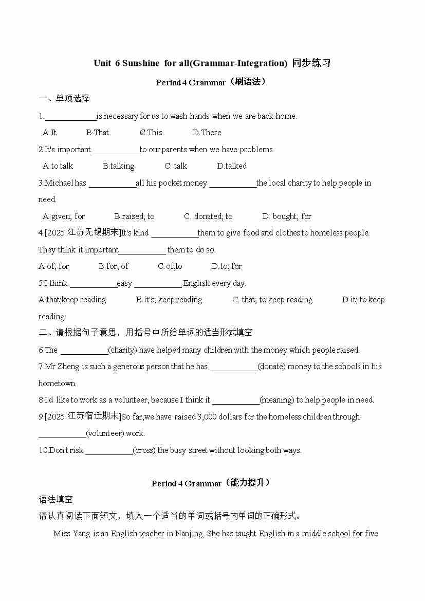 Unit7 Charities(Grammar-Integration)同步练习-2025-2026学年译林版英语八年级下册