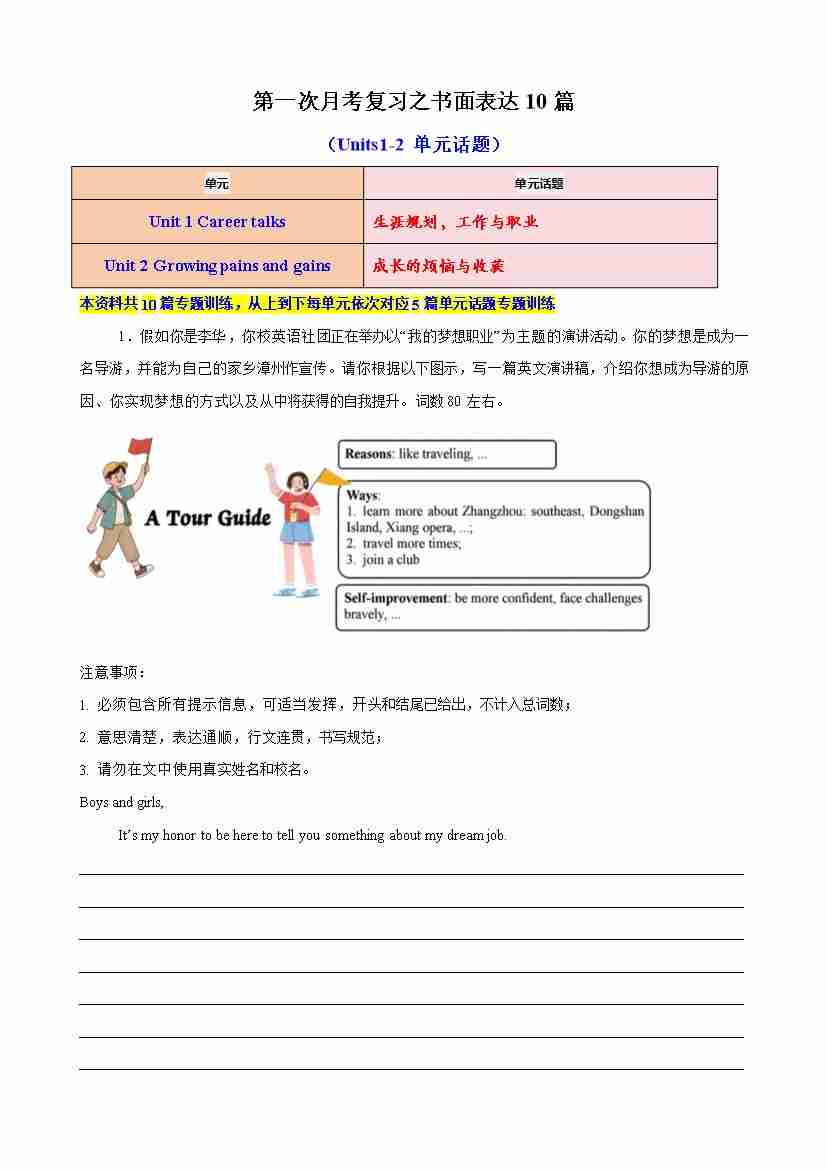 第一次月考复习之书面表达10篇(Units1-2单元话题)(解析版)外研版