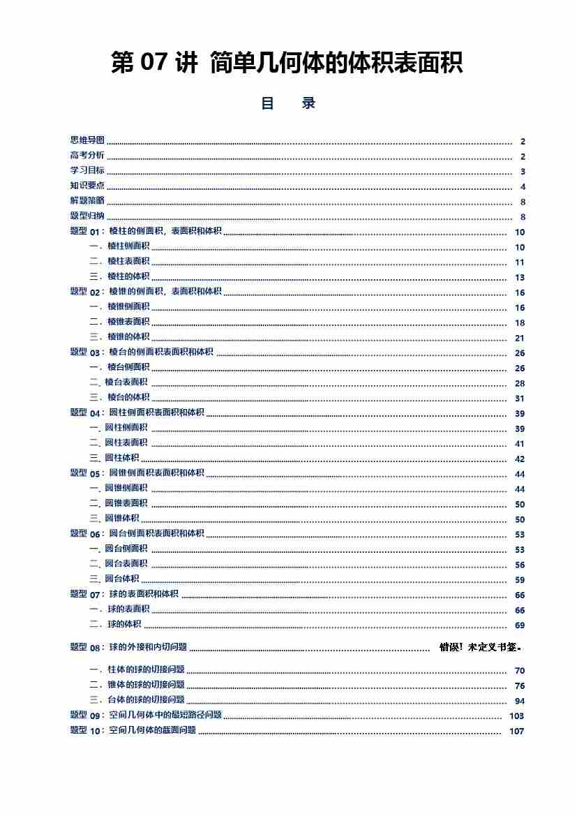 第07讲 简单几何体的表面积体积讲义(思维导图、知识要点、解题技巧、题型归纳、巩固提升)(新高考通用)-学生版