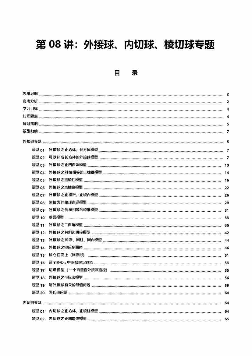 第08讲 外接球、内切球、棱切球讲义(思维导图、知识要点、解题技巧、题型归纳、巩固提升)(新高考通用)-学生版