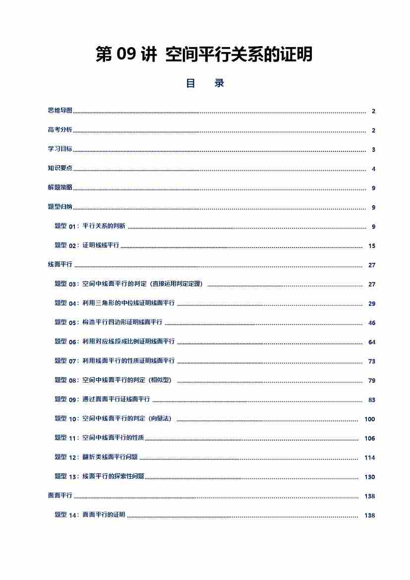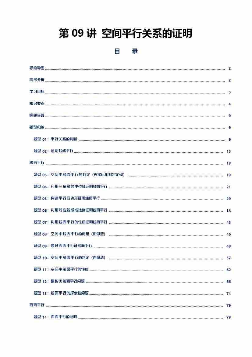 第09讲 空间平行关系的证明讲义(思维导图、知识要点、解题技巧、题型归纳、巩固提升)(新高考通用)-学生版