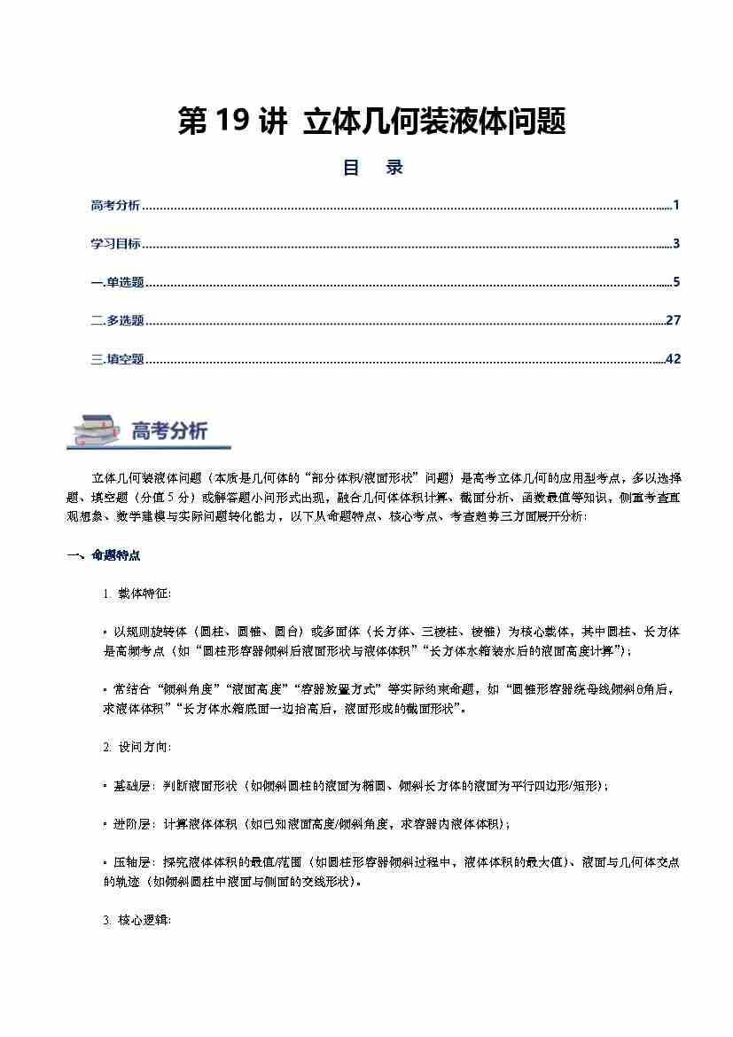 第19讲 立体几何装液体问题(新高考通用)-教师版