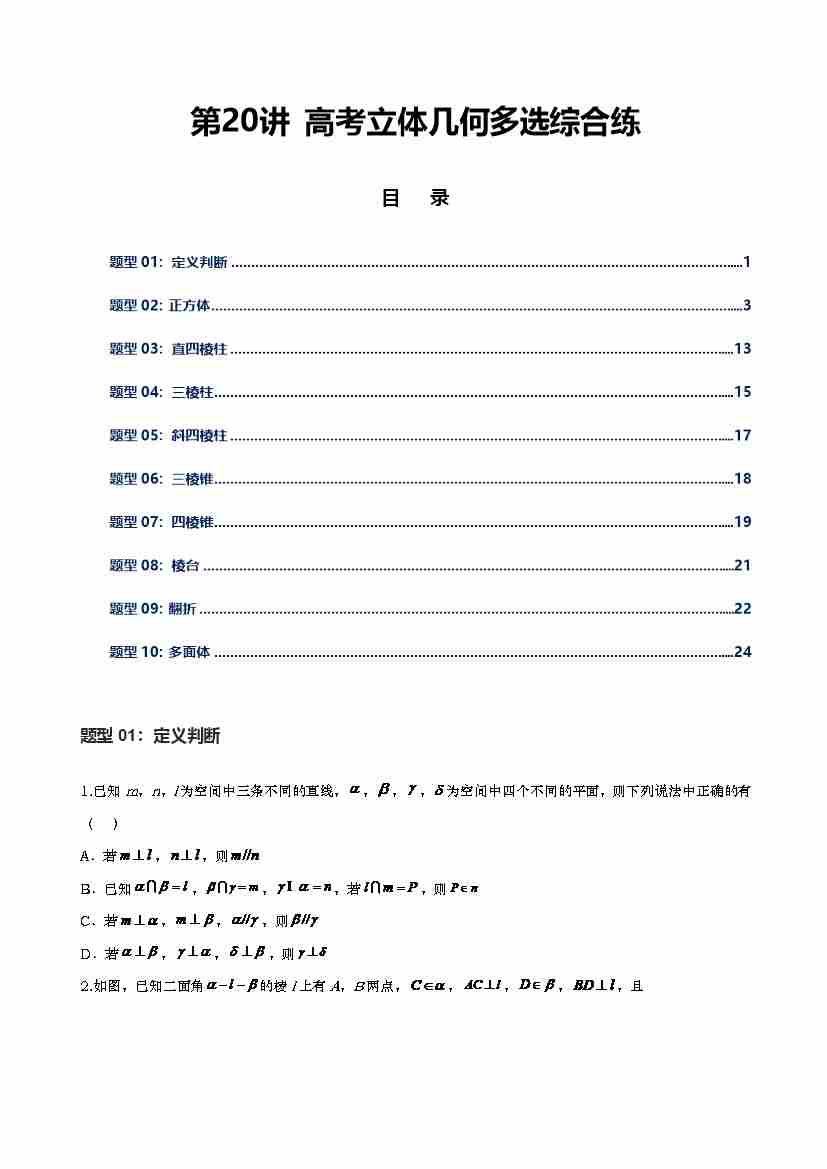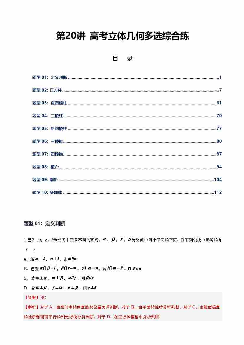 第20讲 立体几何多选综合教师版(新高考通用)-学生版