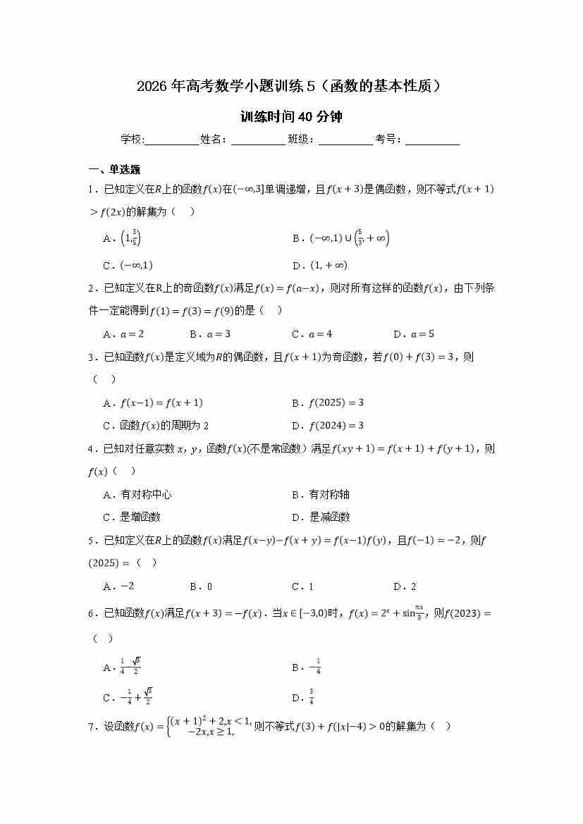 高考数学小题训练5(函数的基本性质)学生版