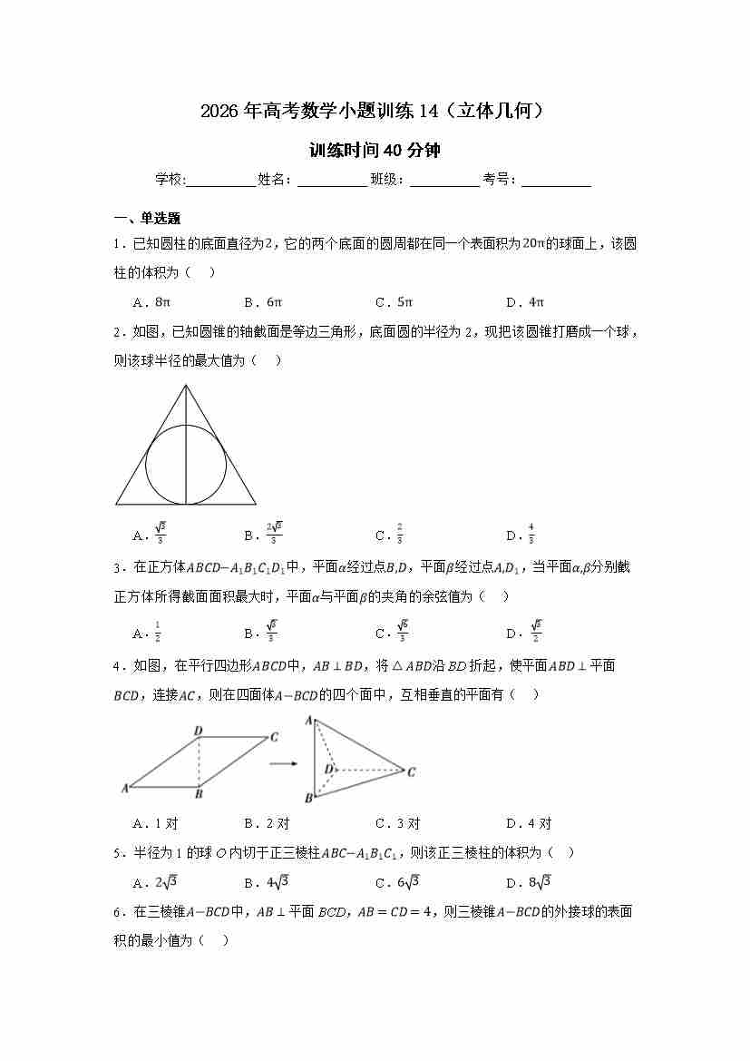 第19讲 立体几何装液体问题(新高考通用)-学生版