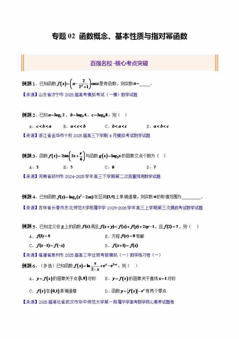 专题02 函数概念、基本性质与指对幂函数(精选30题)(学生版)