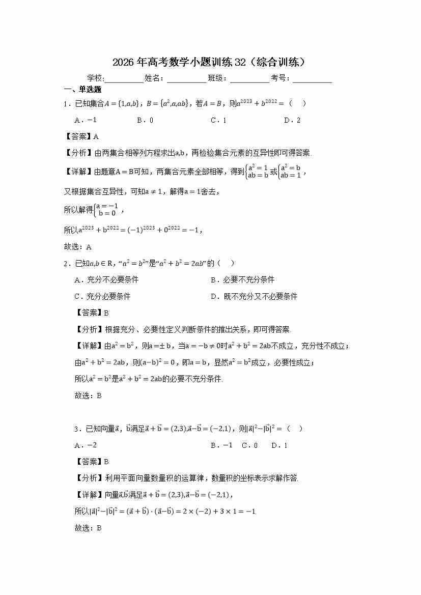 高考数学小题训练32(综合训练)教师版