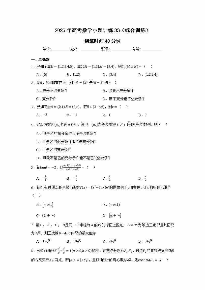 高考数学小题训练33(综合训练)学生版