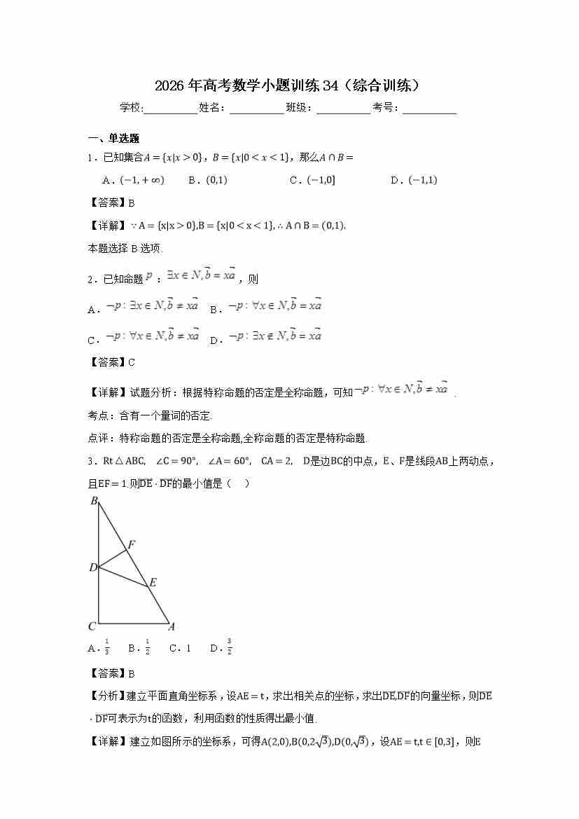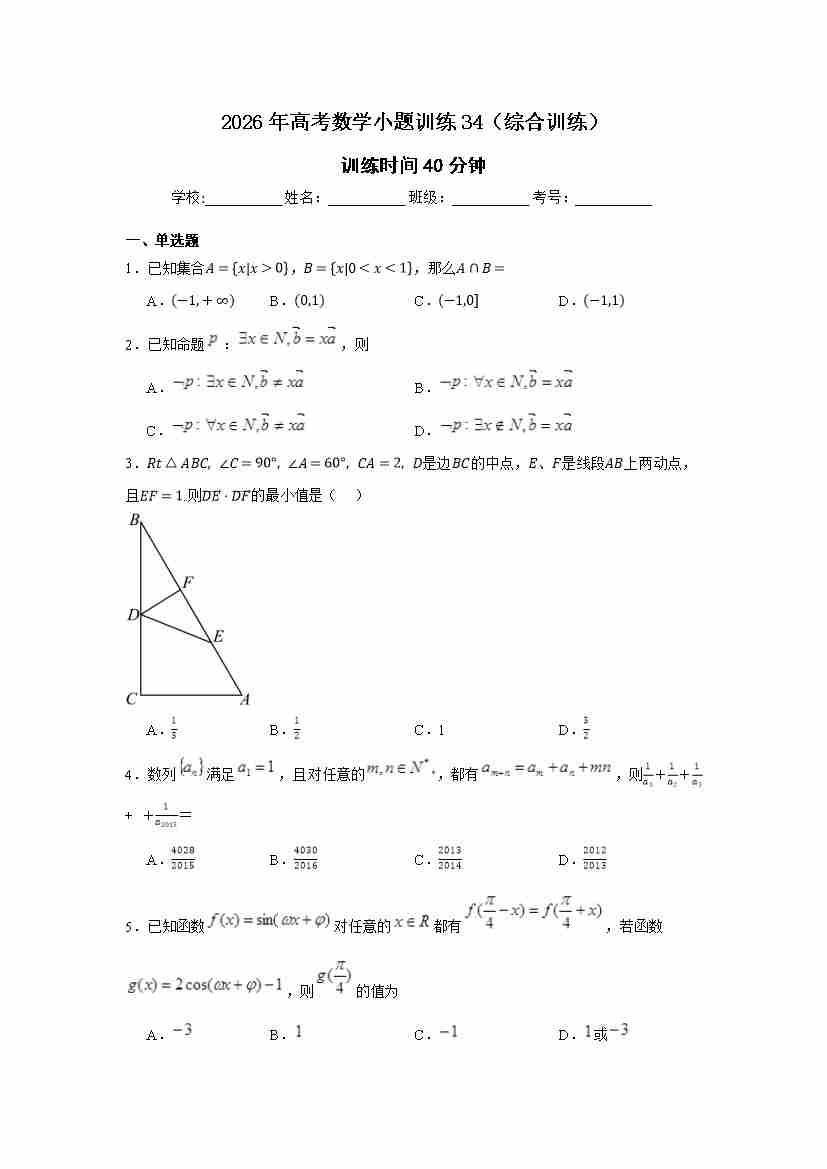 高考数学小题训练34(综合训练)学生版