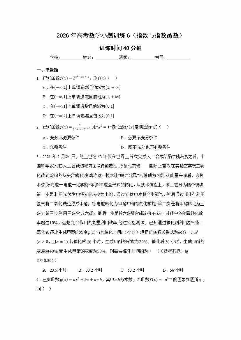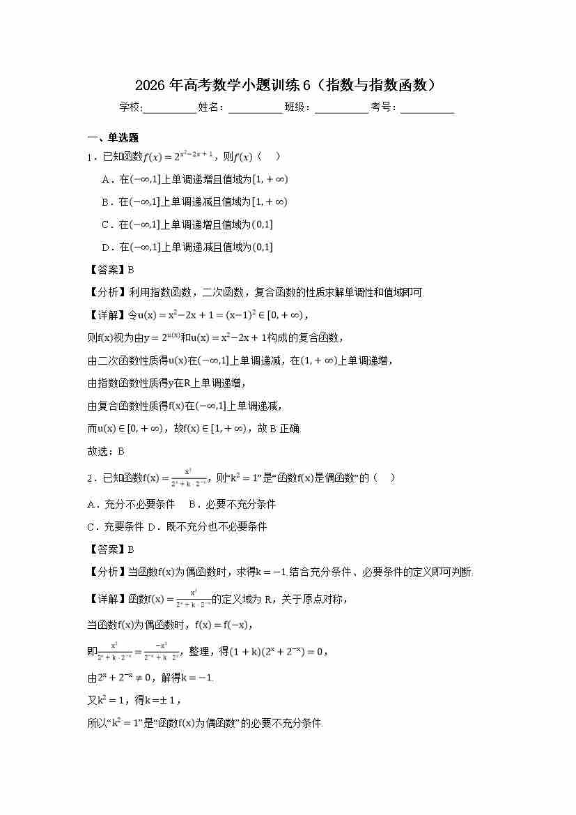 高考数学小题训练6(指数与指数函数)学生版