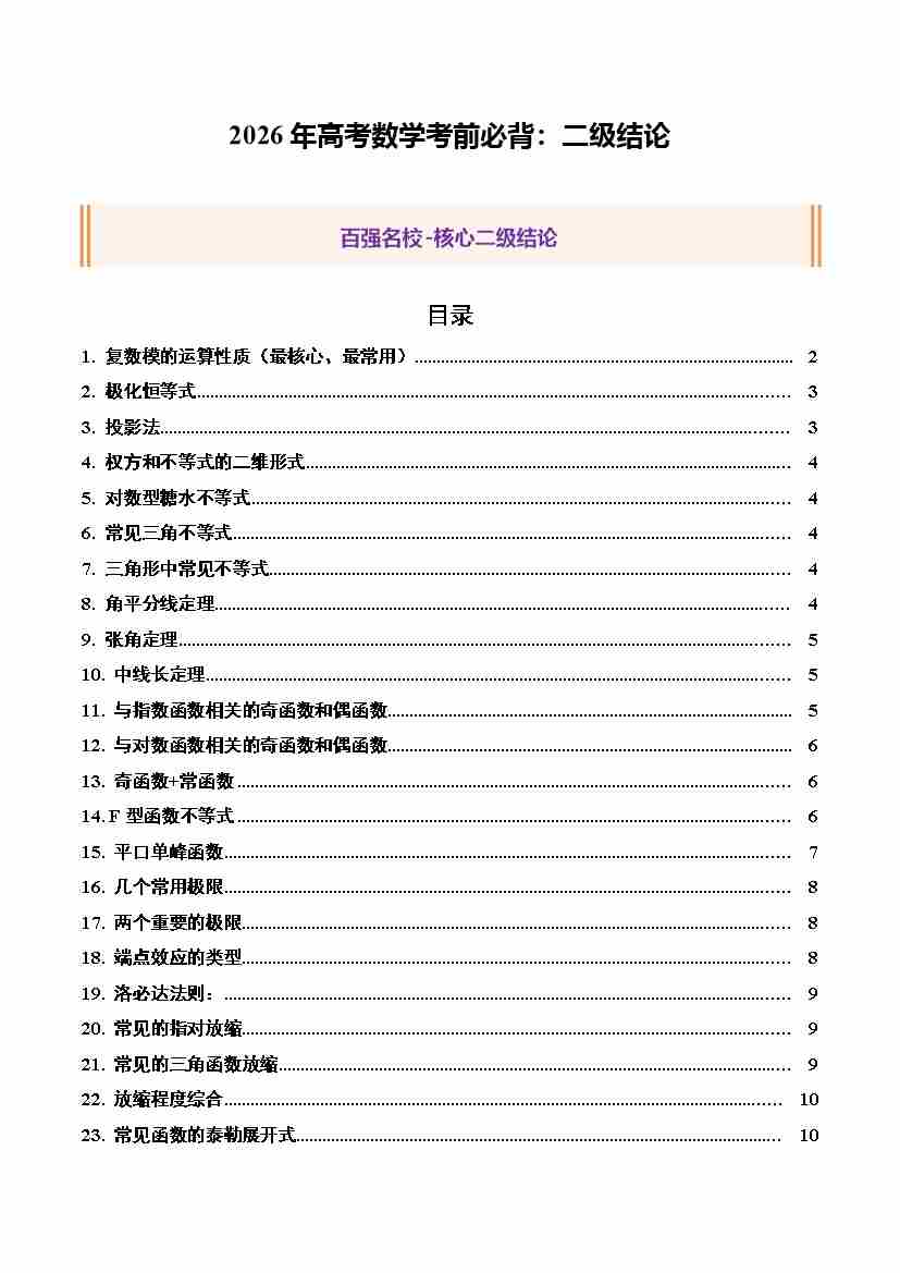高考数学考前必背:二级结论