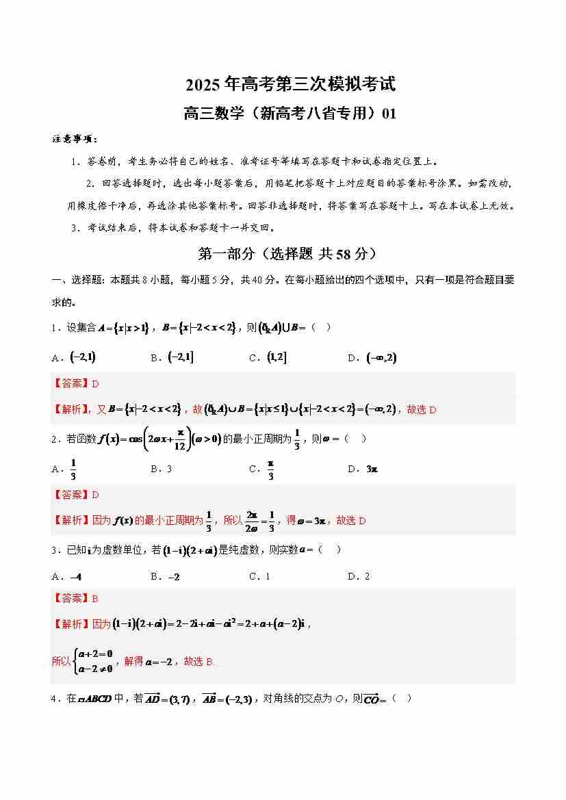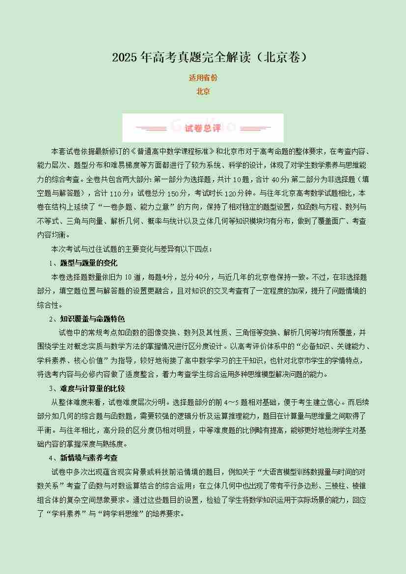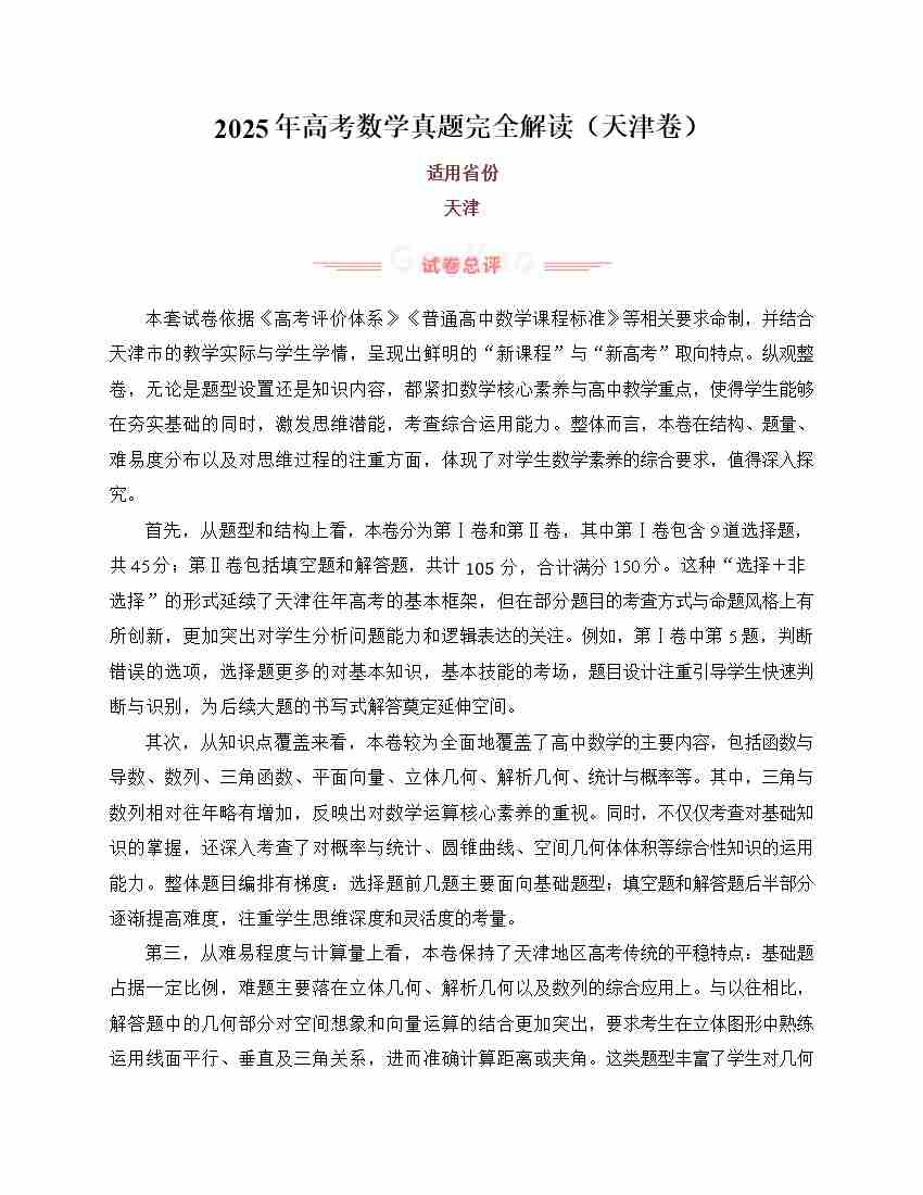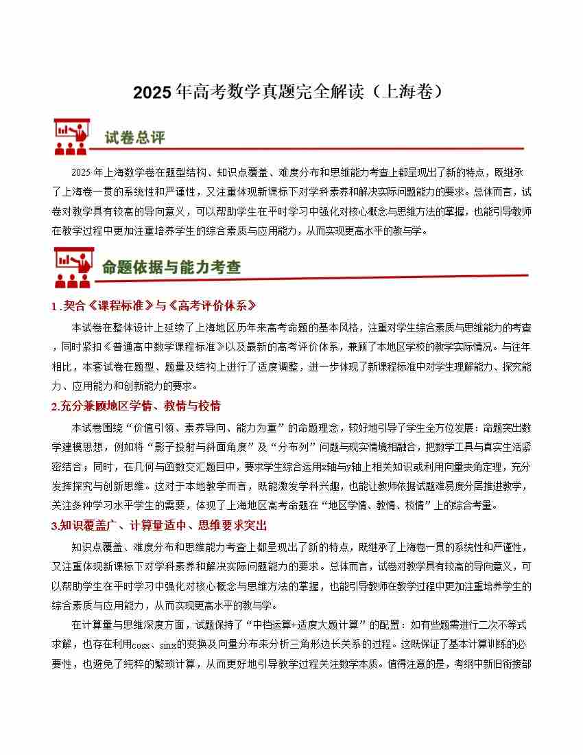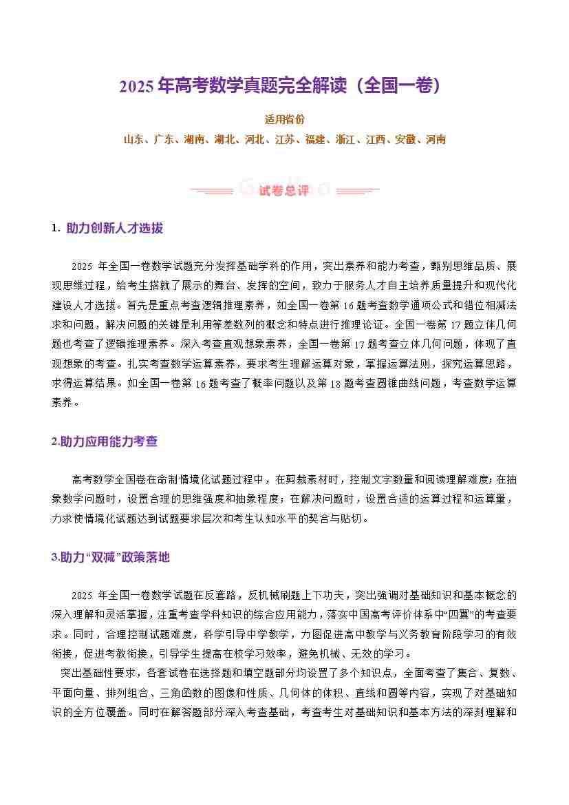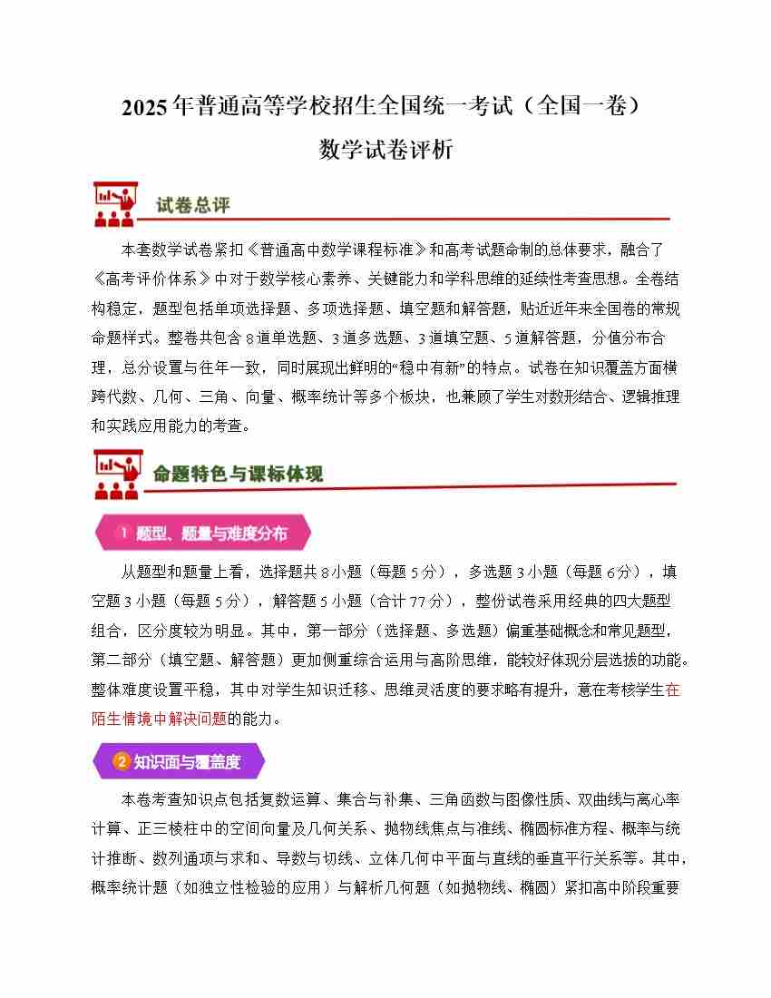 2025年高考数学真题完全解读(全国一卷)(试卷评析)