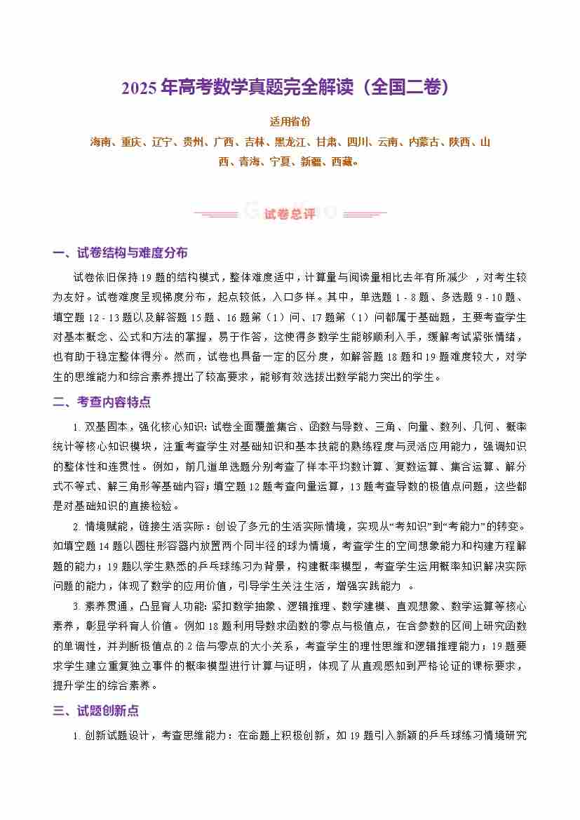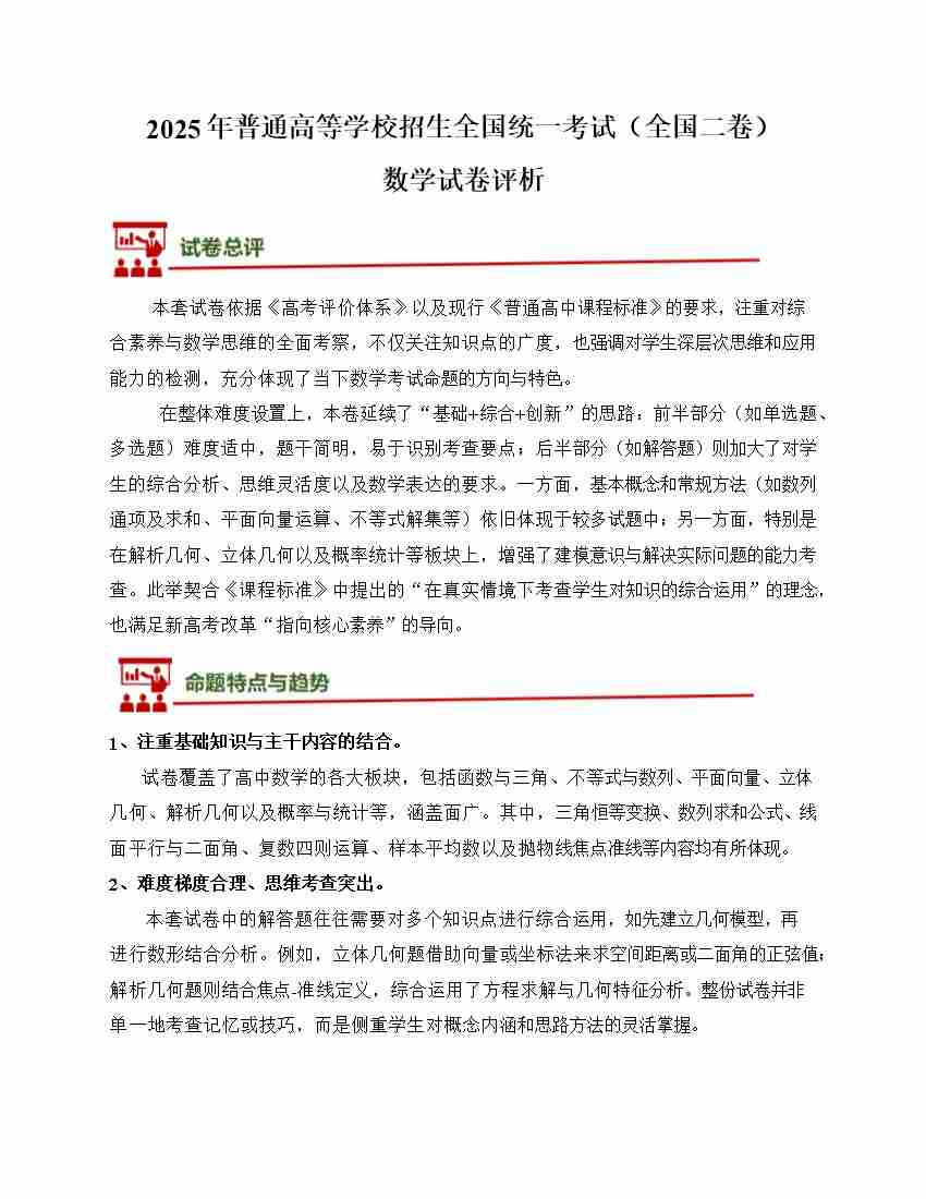 2025年高考数学真题完全解读(全国二卷)(试卷评析)