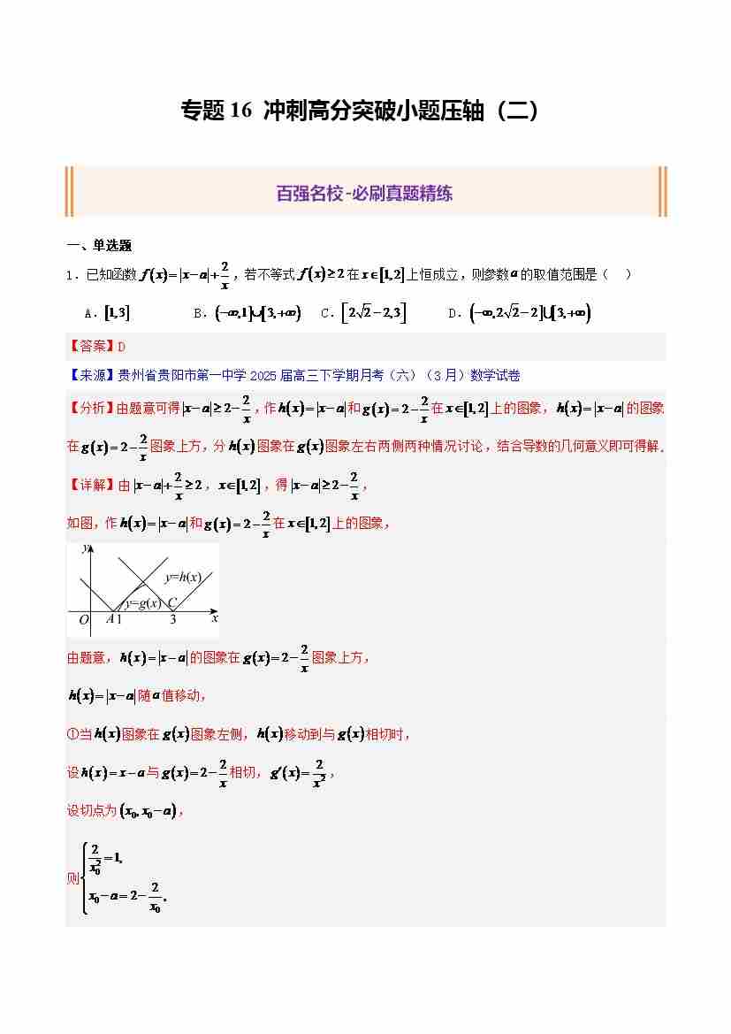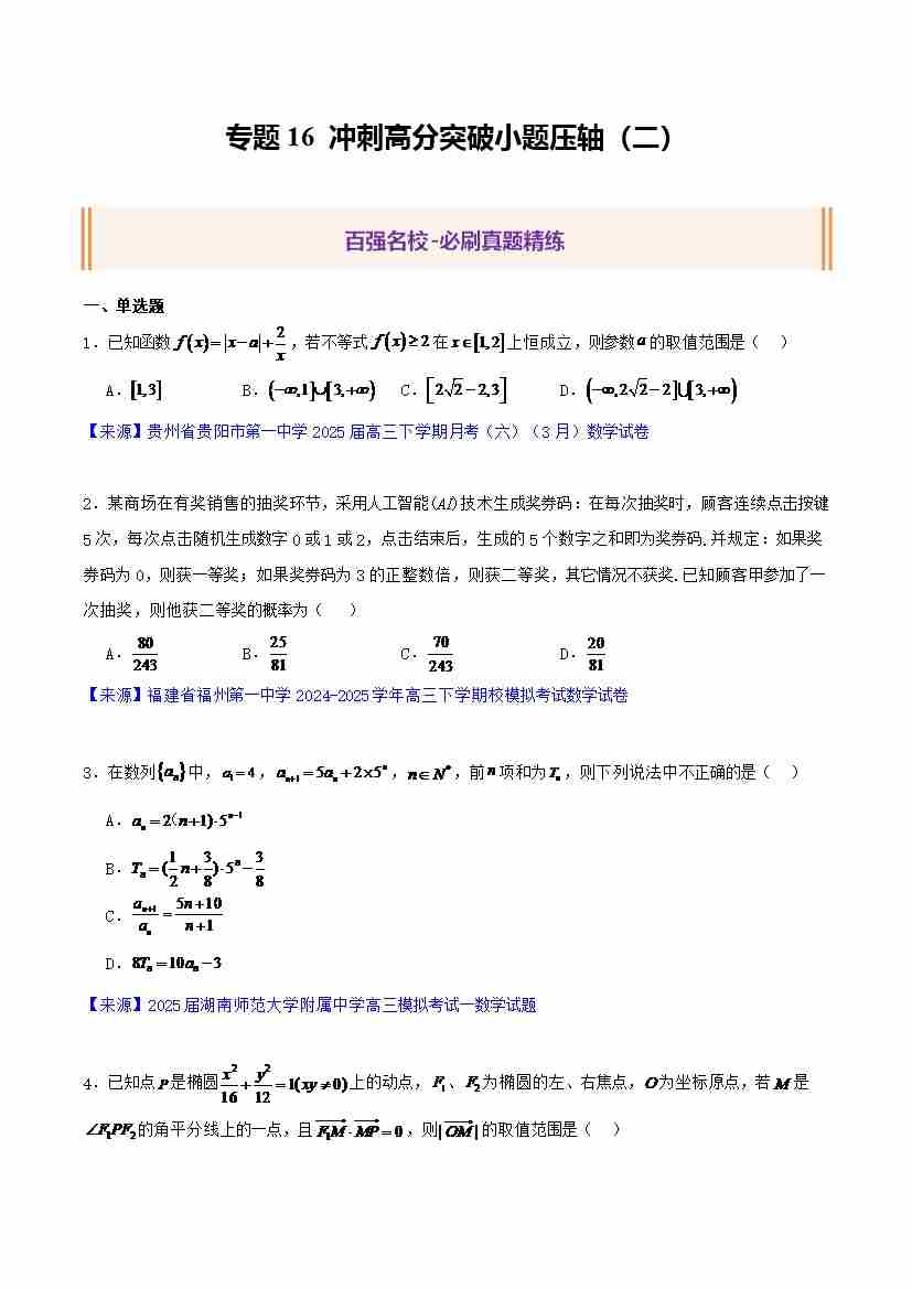 专题16 冲刺高分突破小题压轴(二)(精选60题)(学生版)
