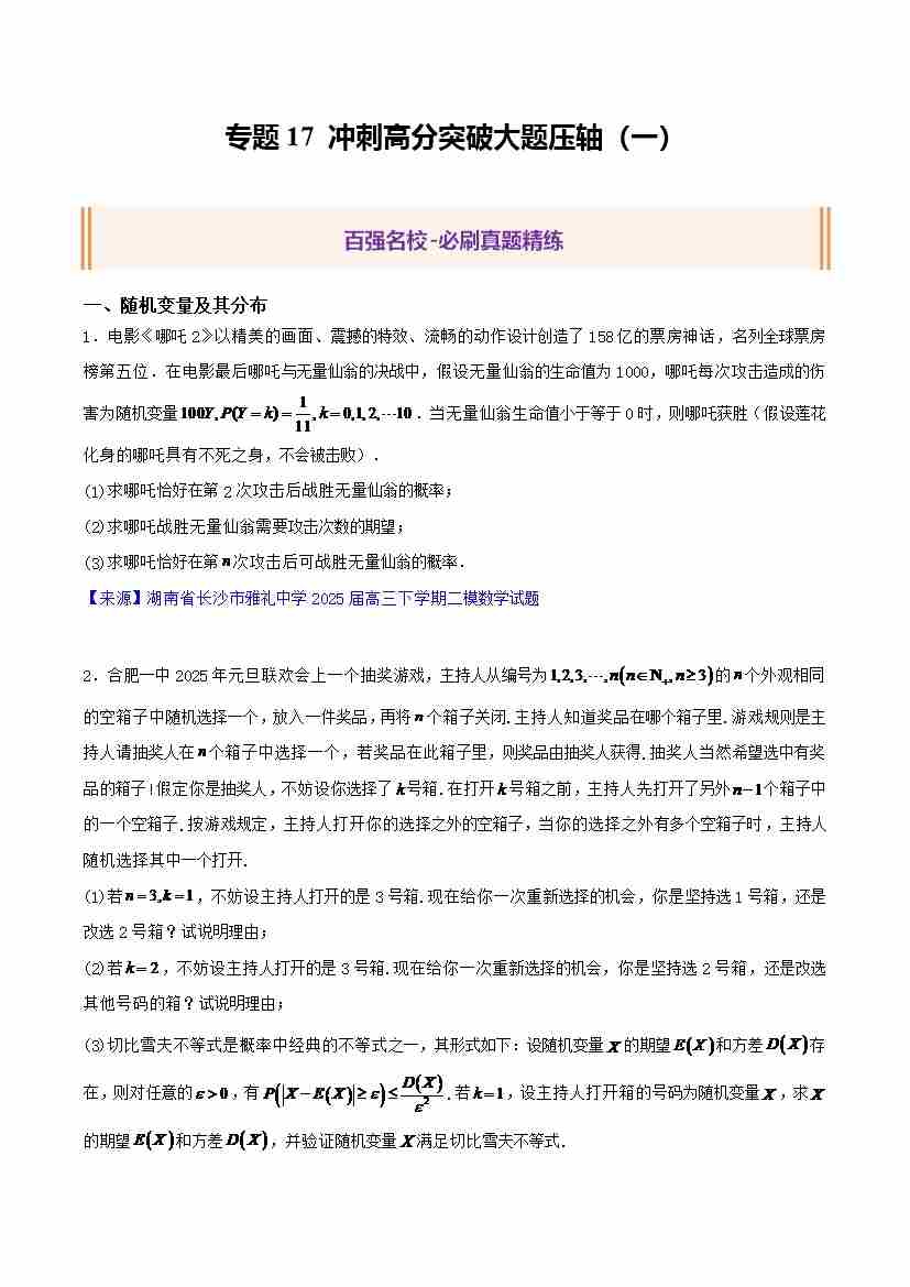 专题17 冲刺高分突破大题压轴(一)(精选40题)(教师版)