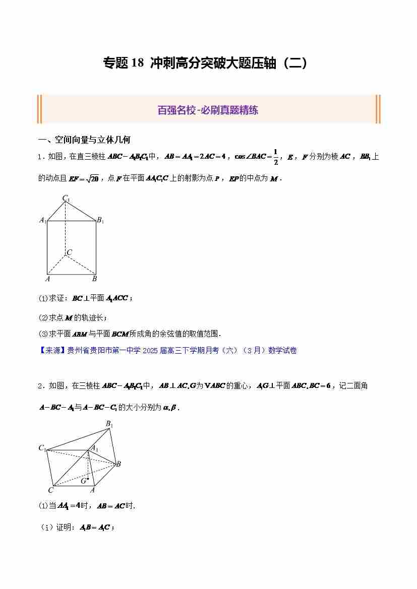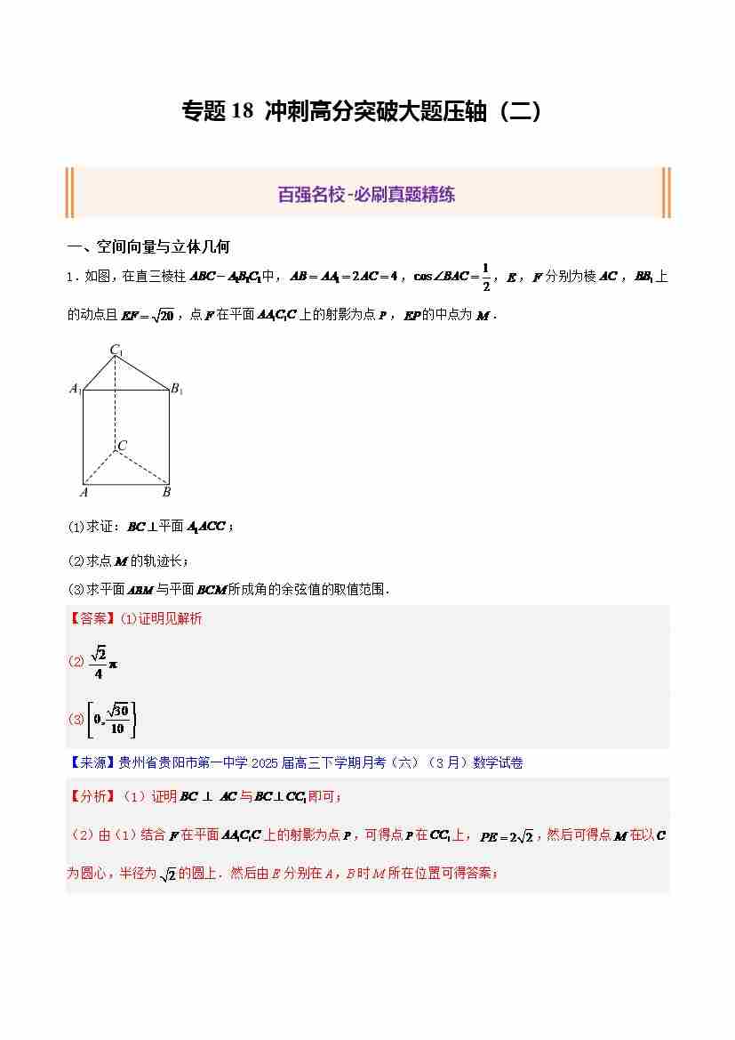 专题18 冲刺高分突破大题压轴(二)(精选40题)(学生版)