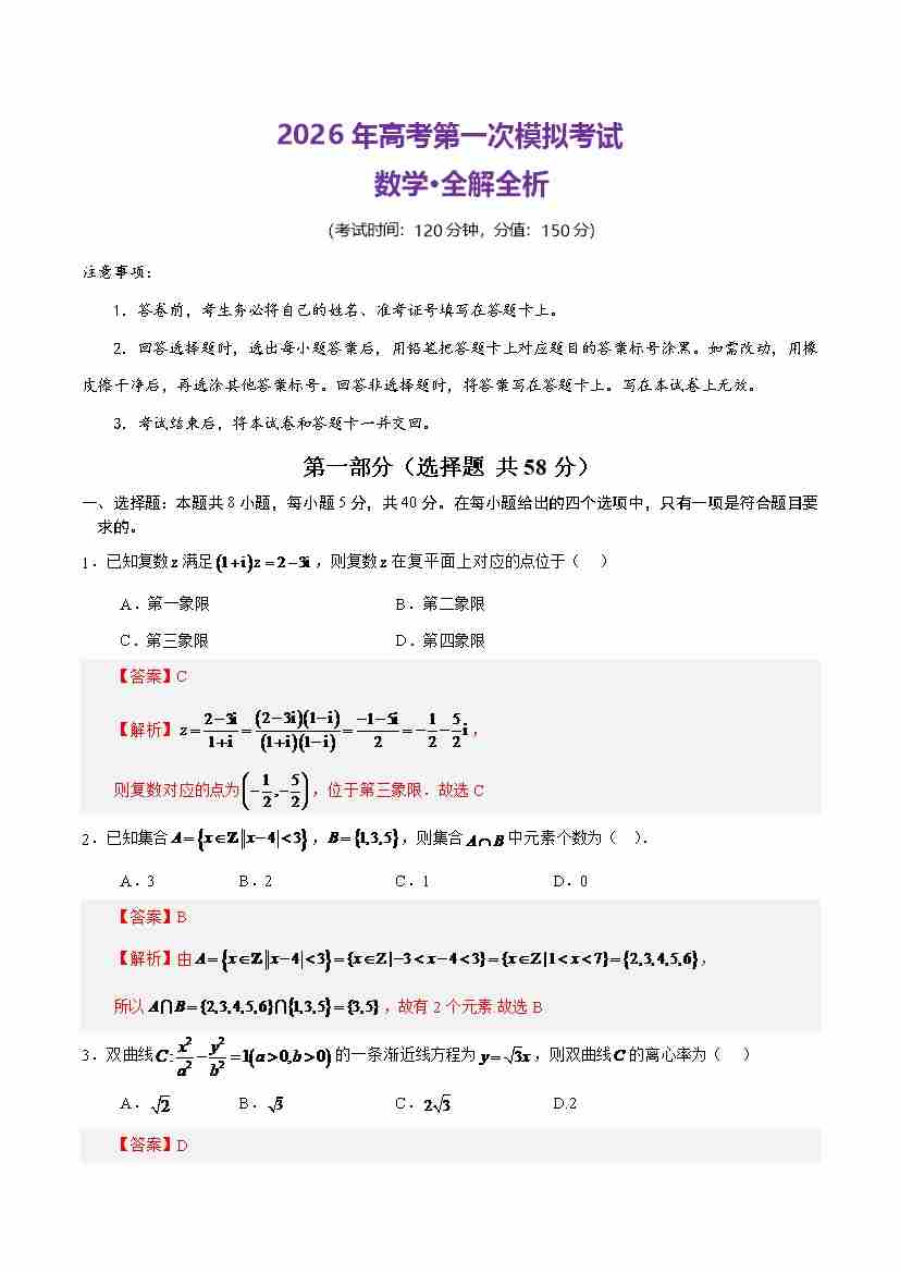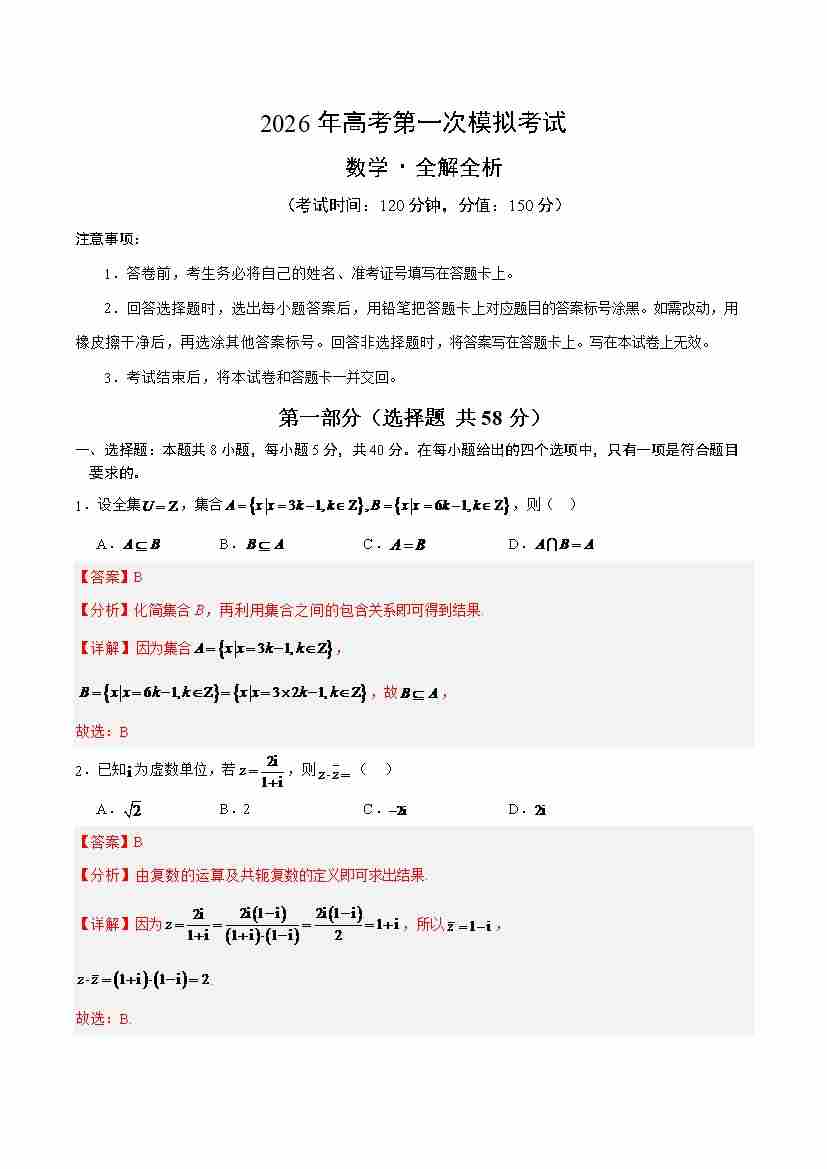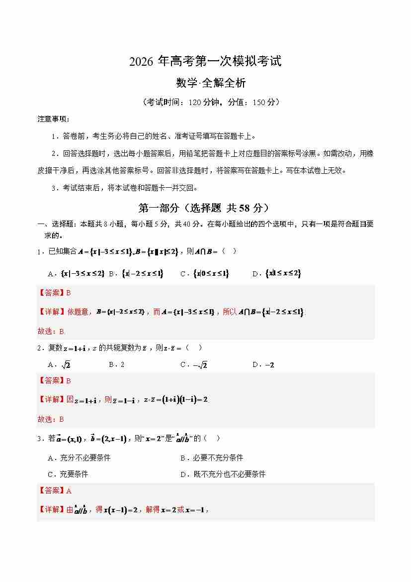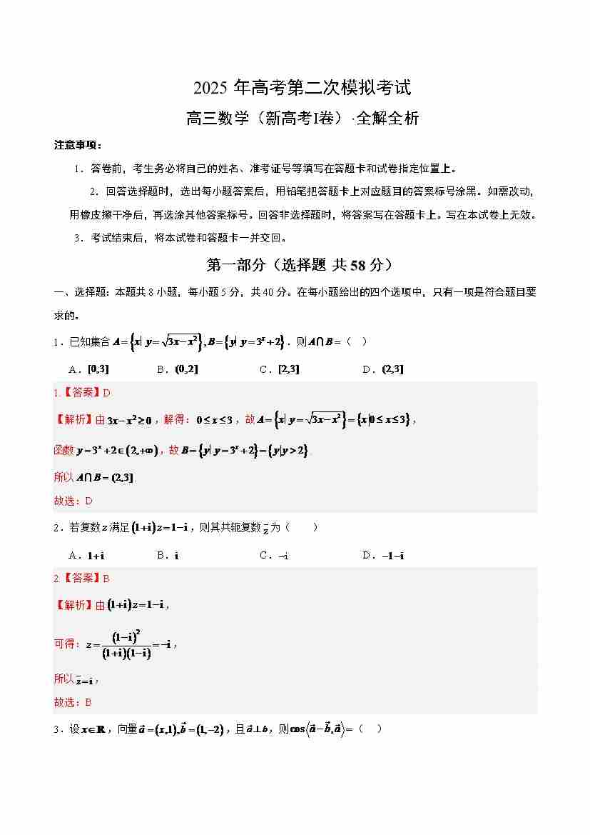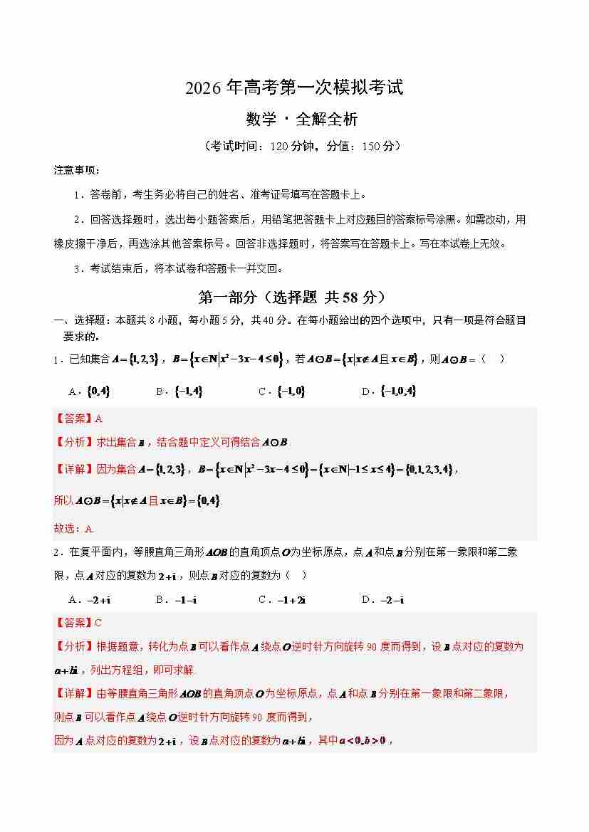 数学(新高考Ⅰ卷)02(全解全析)