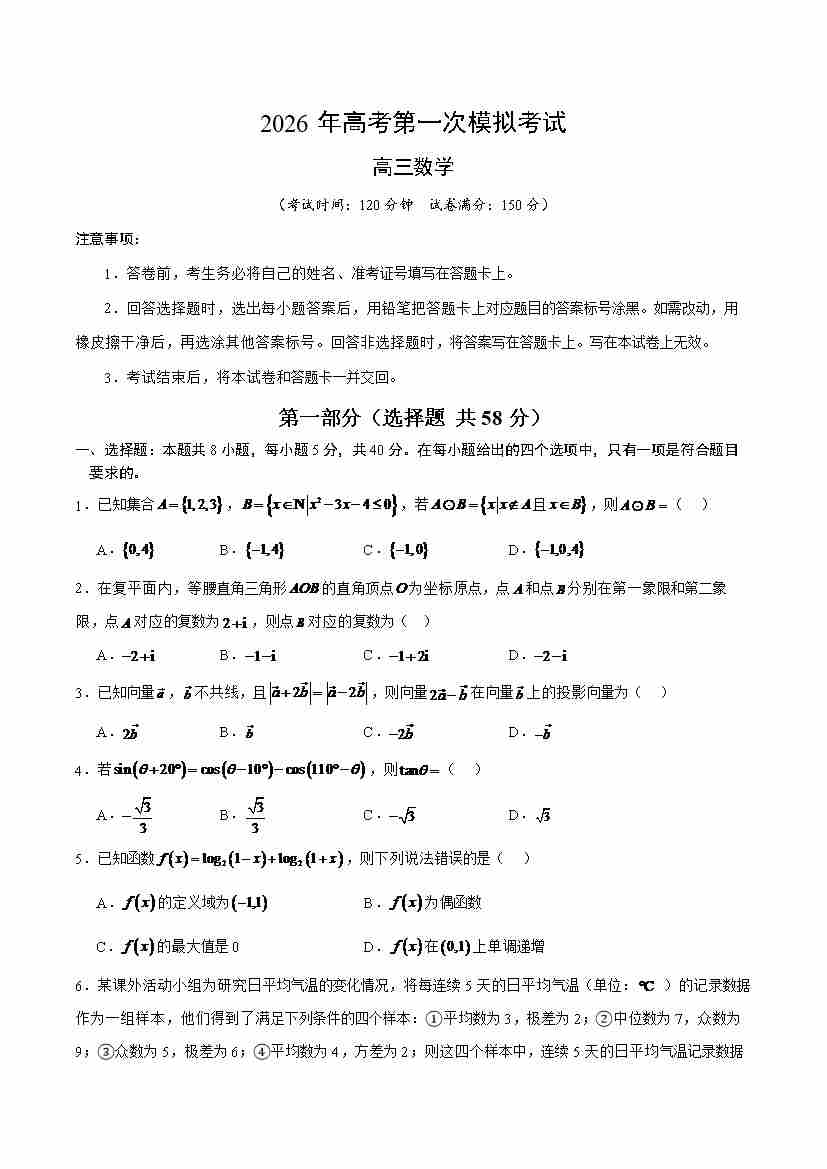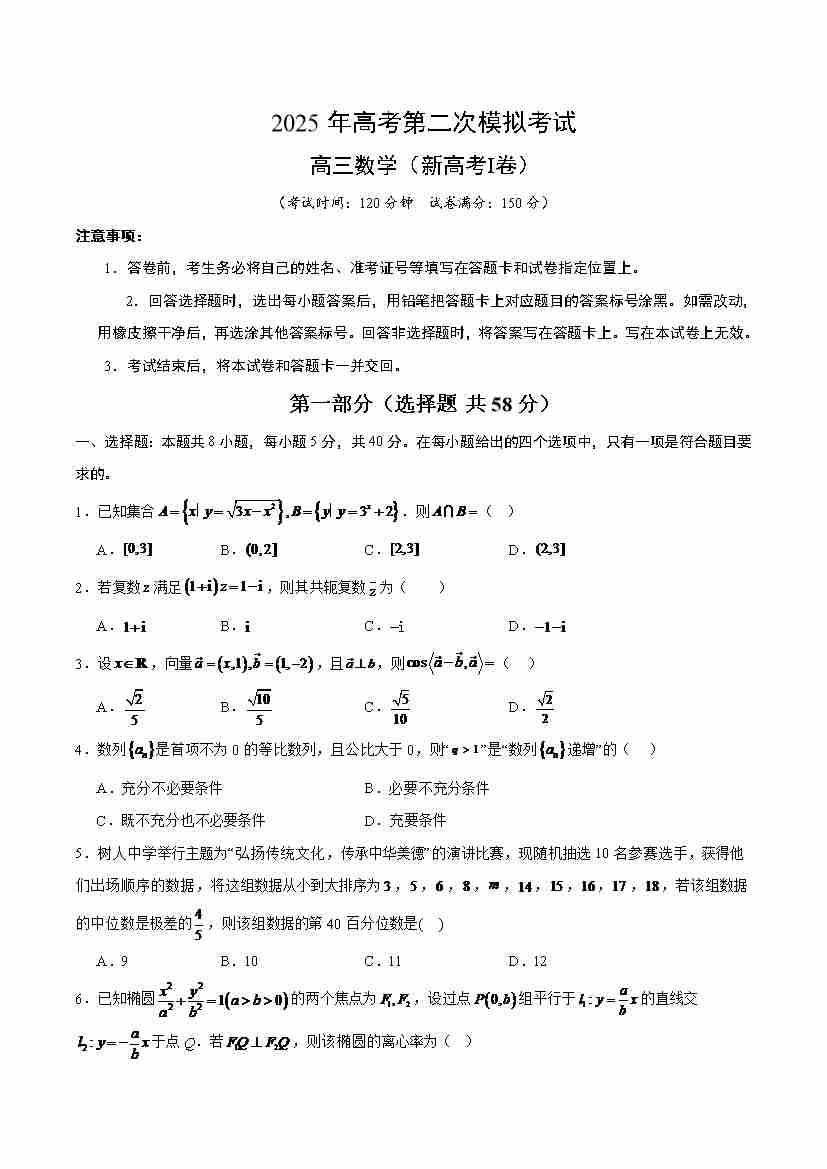 数学(新高考Ⅰ卷)02(考试版)
