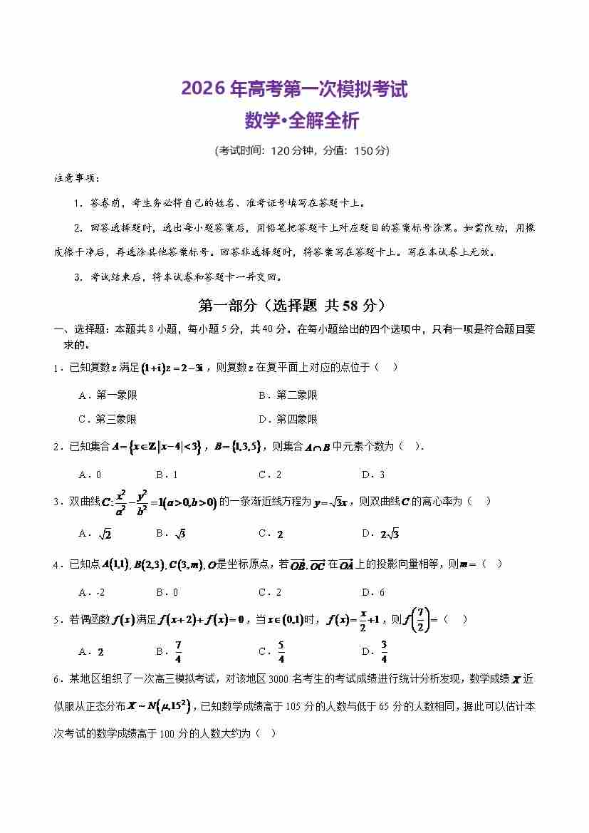 数学一模保分卷01(全国一卷通用)(考试版)