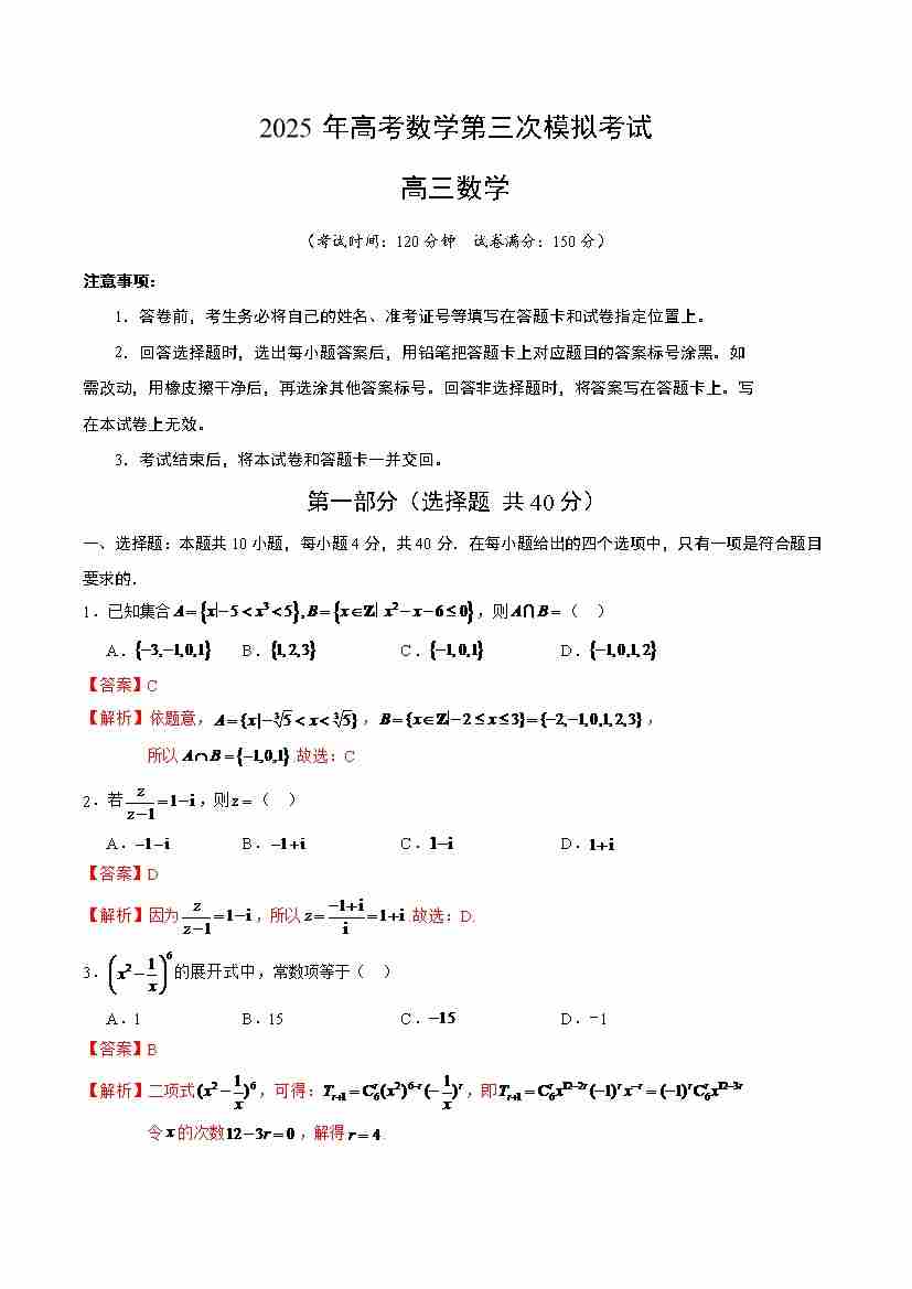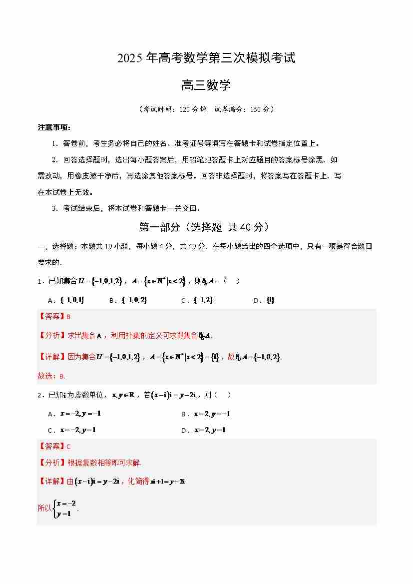 数学一模保分卷03(全国一卷通用)(全解全析)