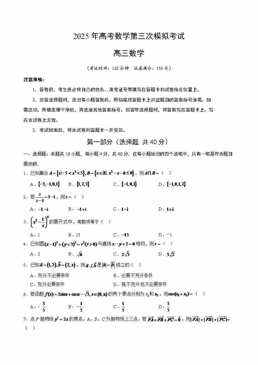 数学北京卷三模(考试版A4)