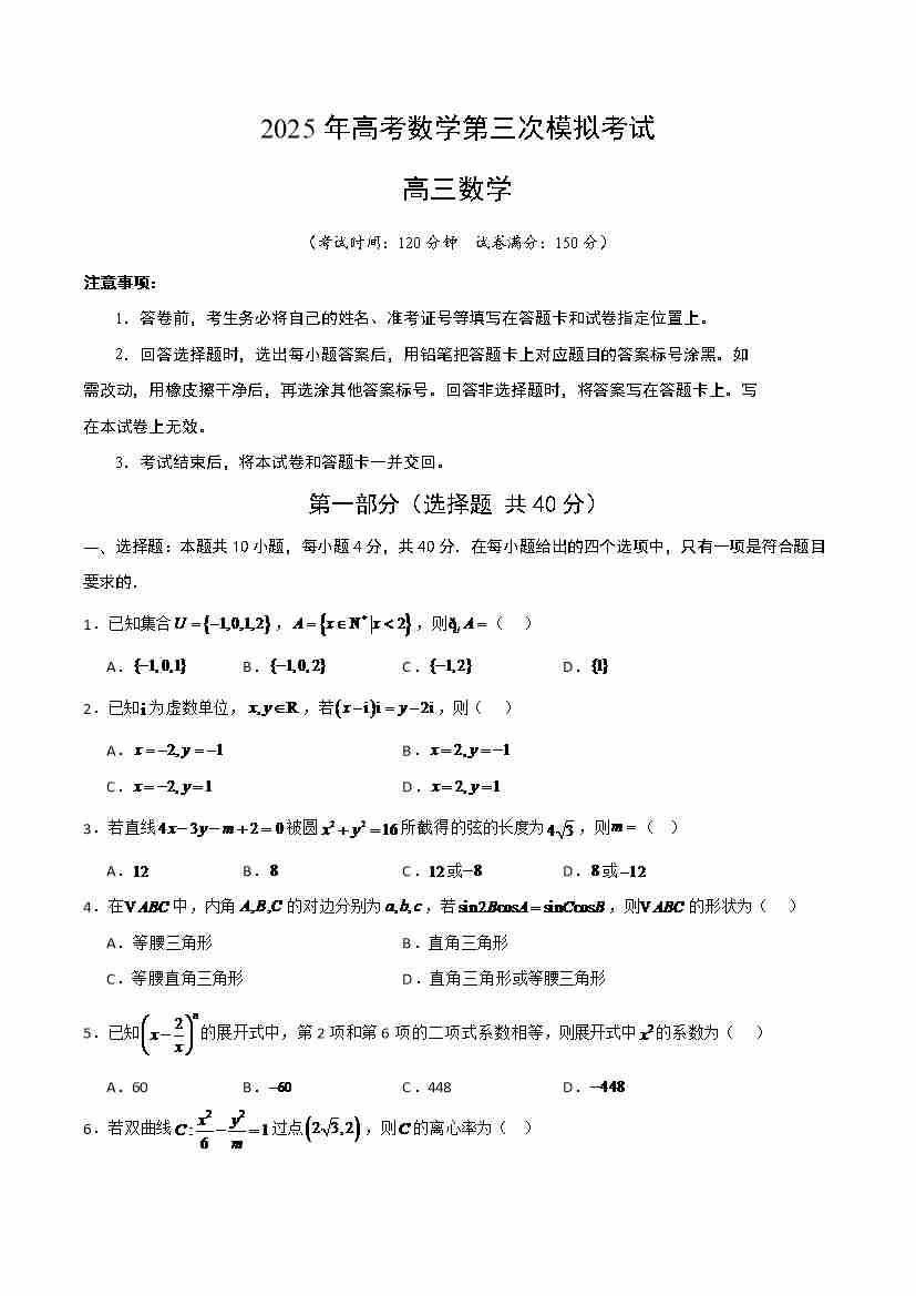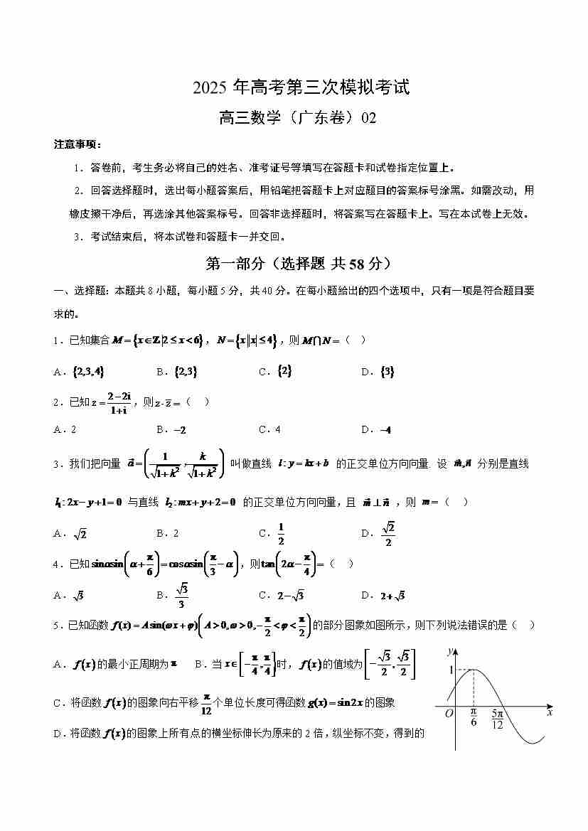 数学(广东卷02)三模(考试版)