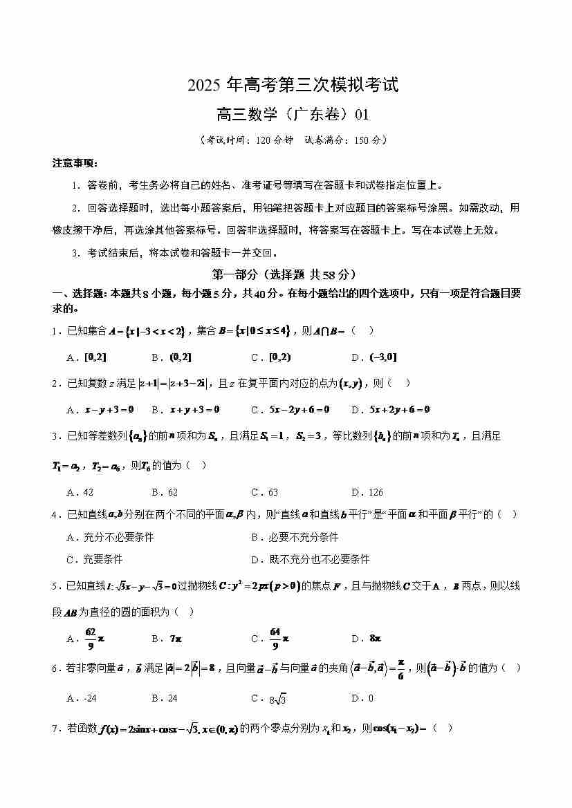 数学(广东卷01)三模(考试版)