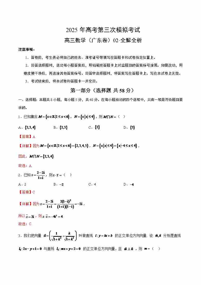 数学(广东卷02)三模(全解全析)