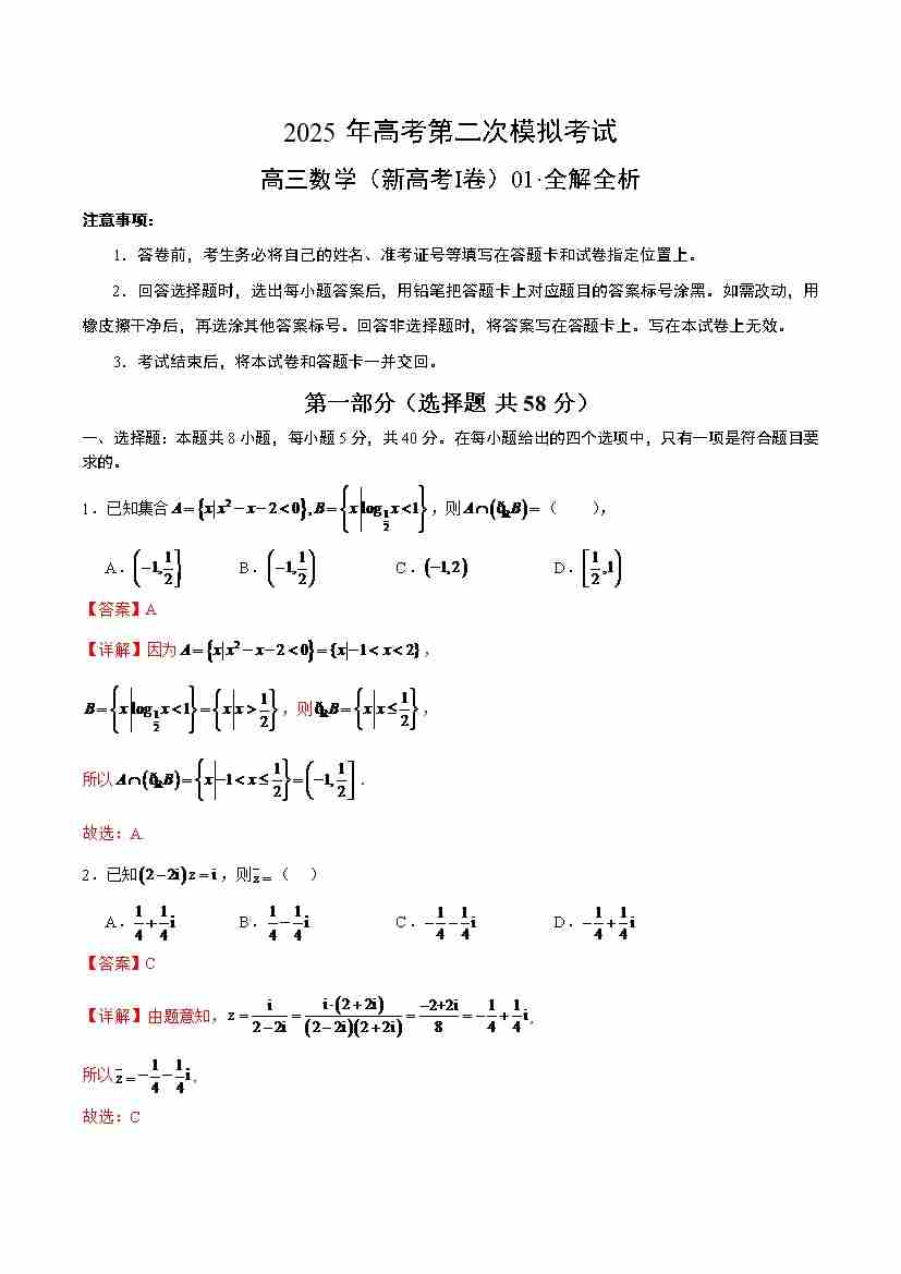 数学(新高考Ⅰ卷01)(全解全析)