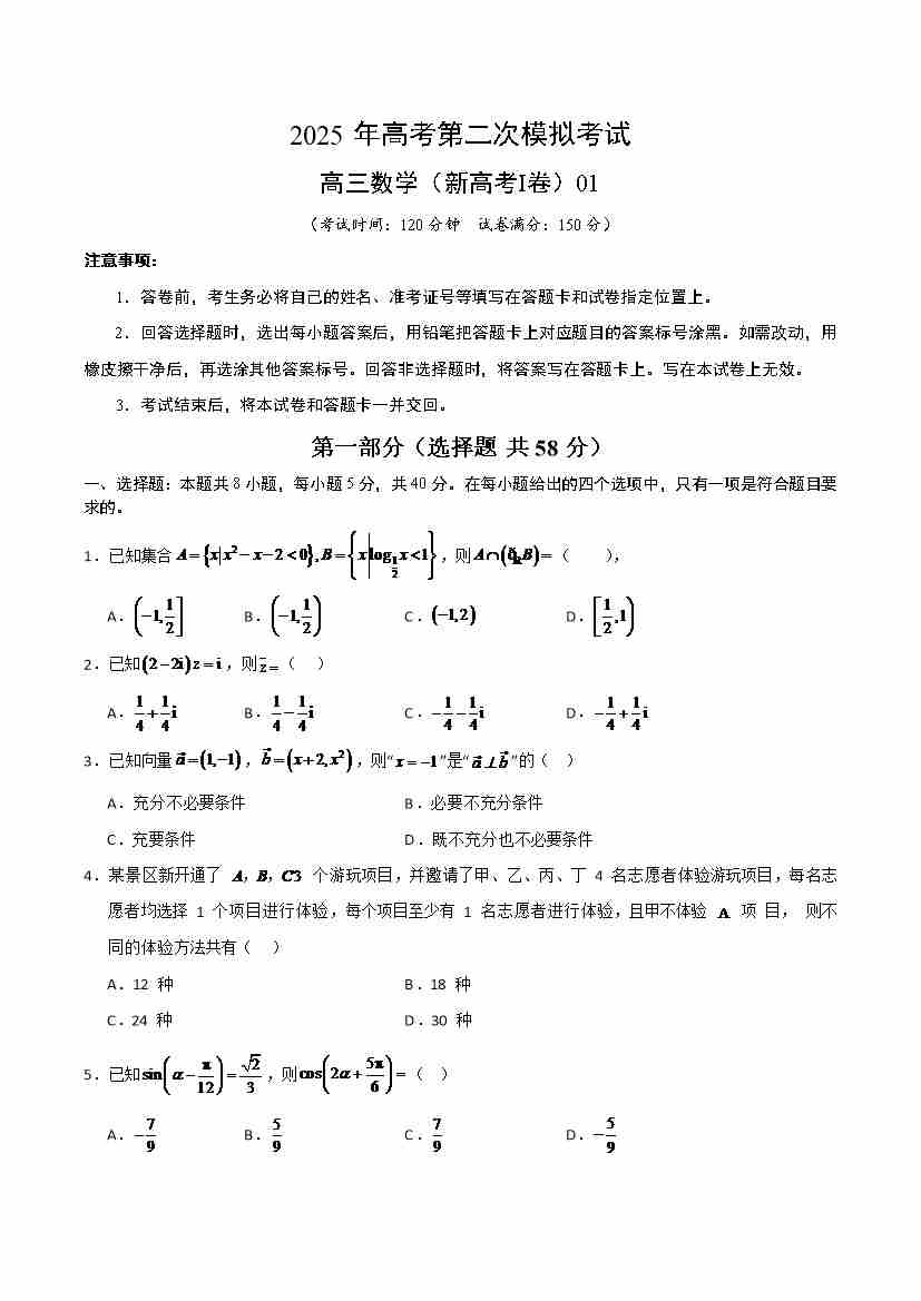数学(新高考Ⅰ卷01)(考试版)