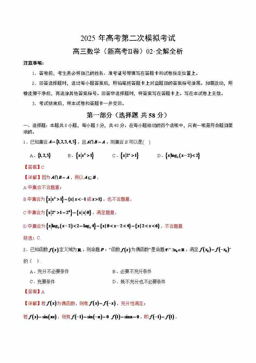 数学(新高考Ⅱ卷02)(全解全析)