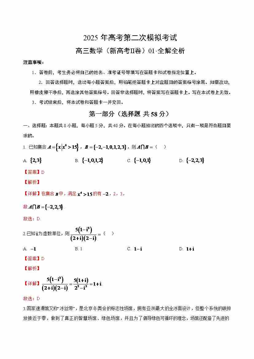 数学(新高考Ⅱ卷)01(全解全析)