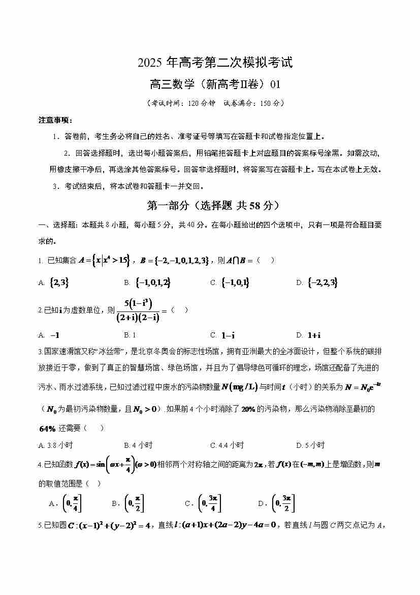 数学(新高考Ⅱ卷)01(考试版)