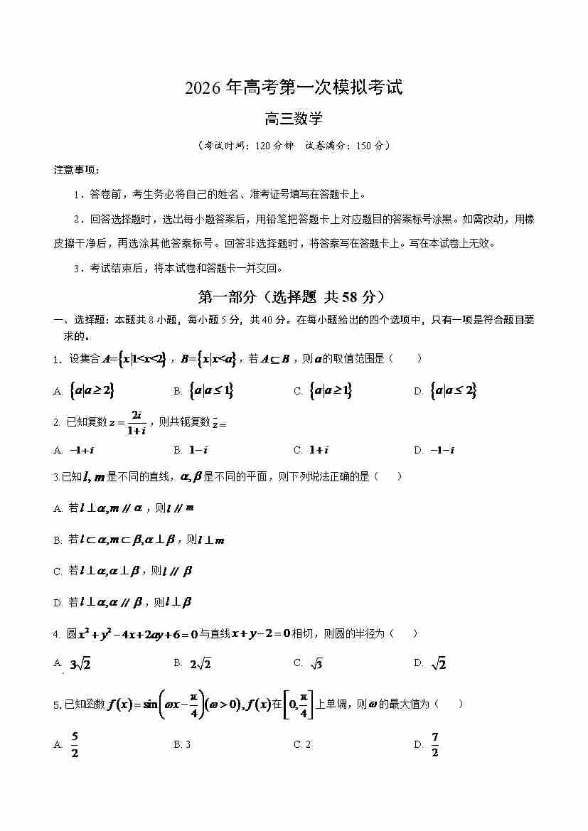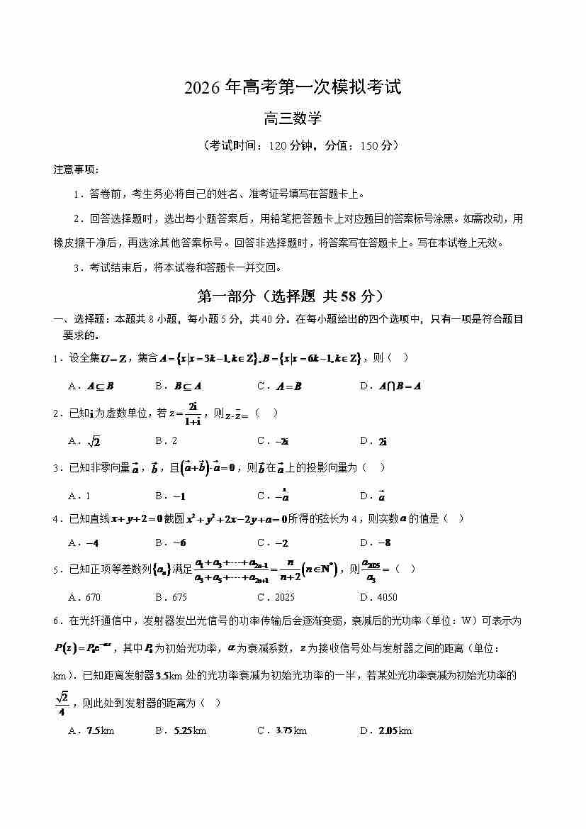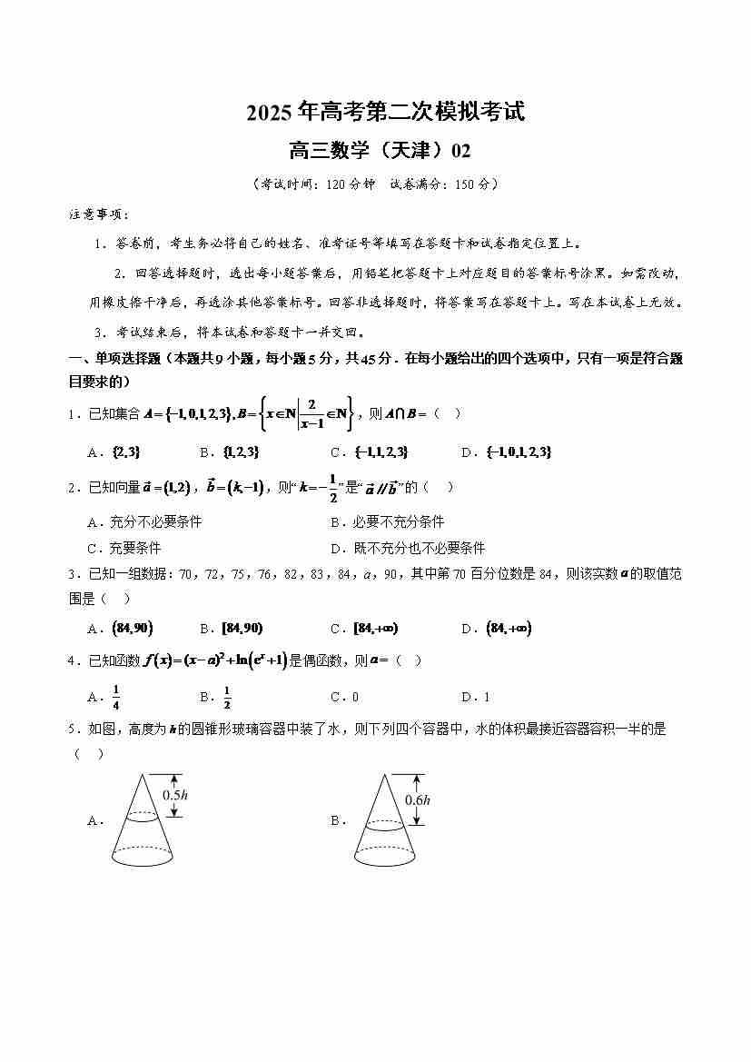 数学(天津卷02)(考试版A4)