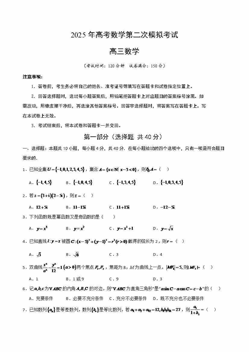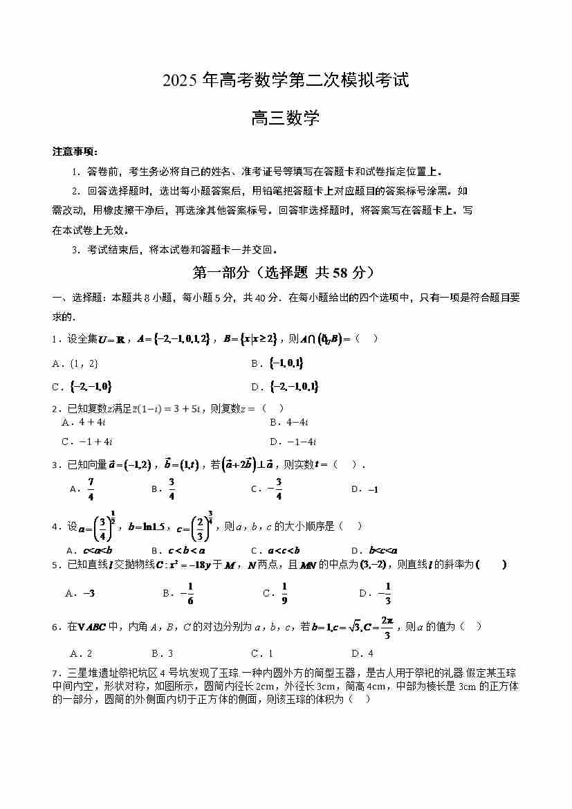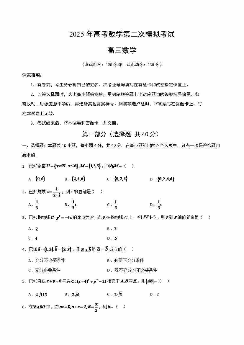 数学北京卷二模(考试版A4)