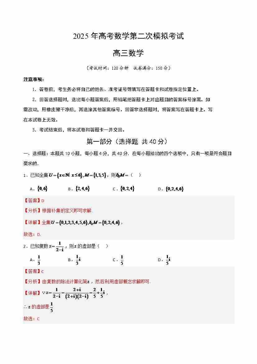 数学一模保分卷02(全国一卷通用)考试版