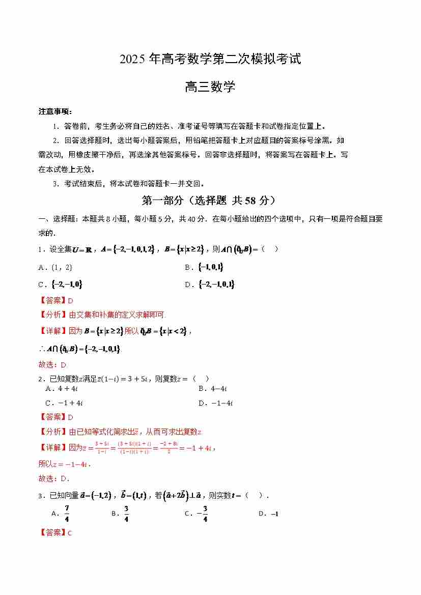 数学北京卷二模02(全解全析)