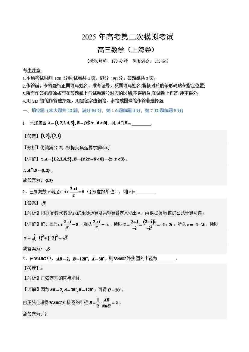 数学(上海卷)02(考试版)