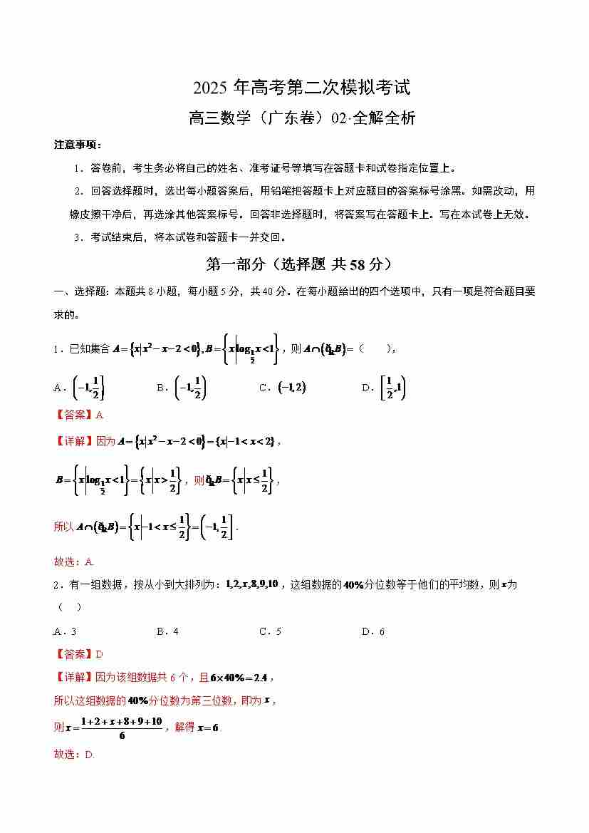 数学(广东卷02)(全解全析)