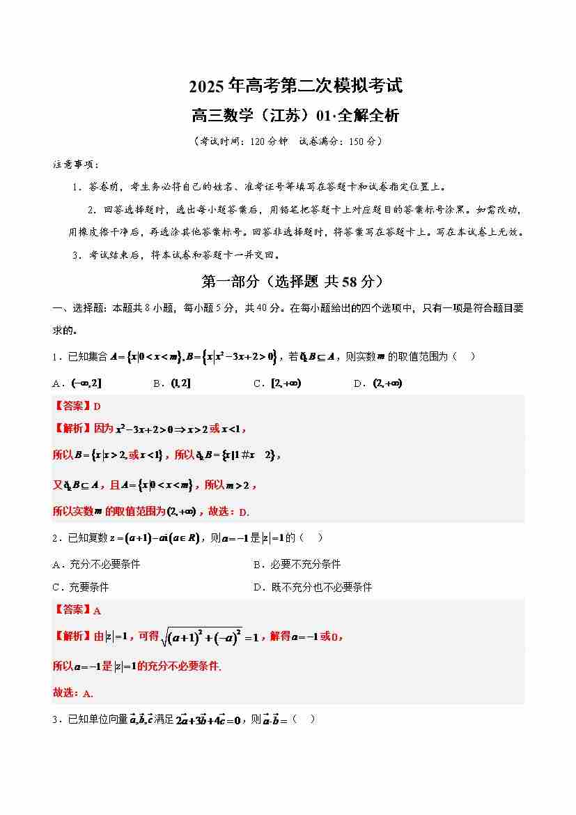 数学(江苏卷01)(全解全析)