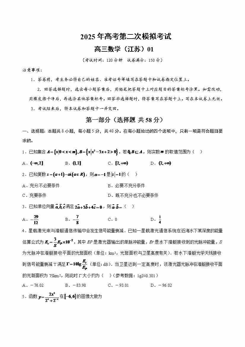 数学(江苏卷01)(考试版A4)