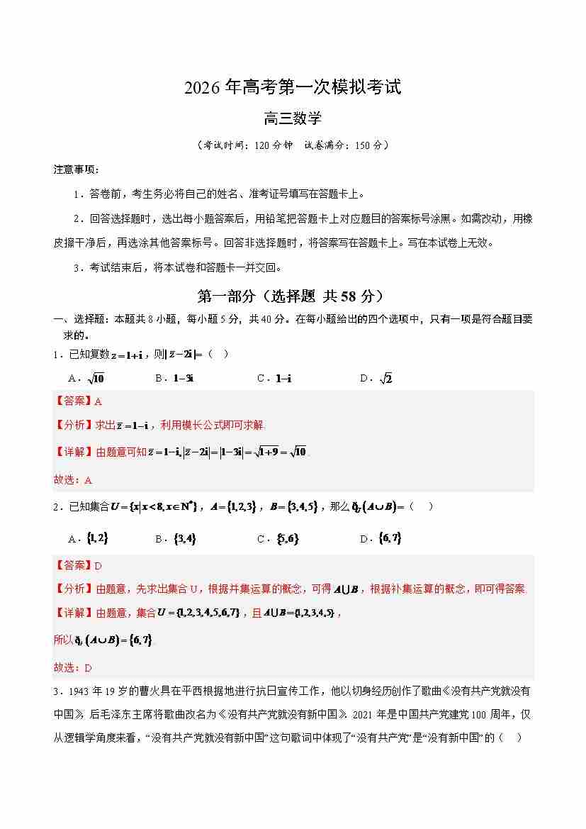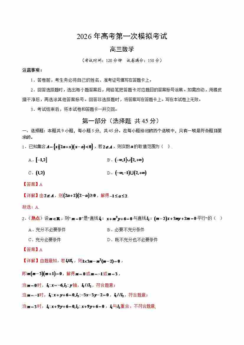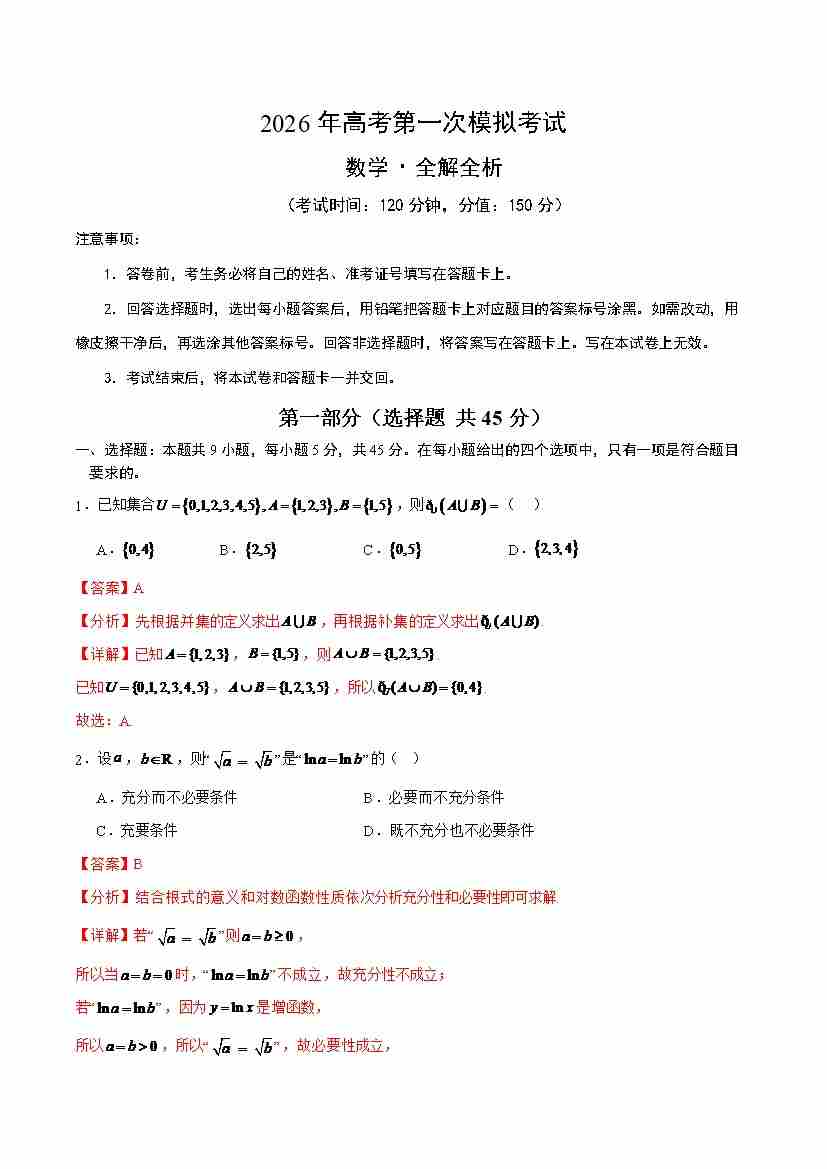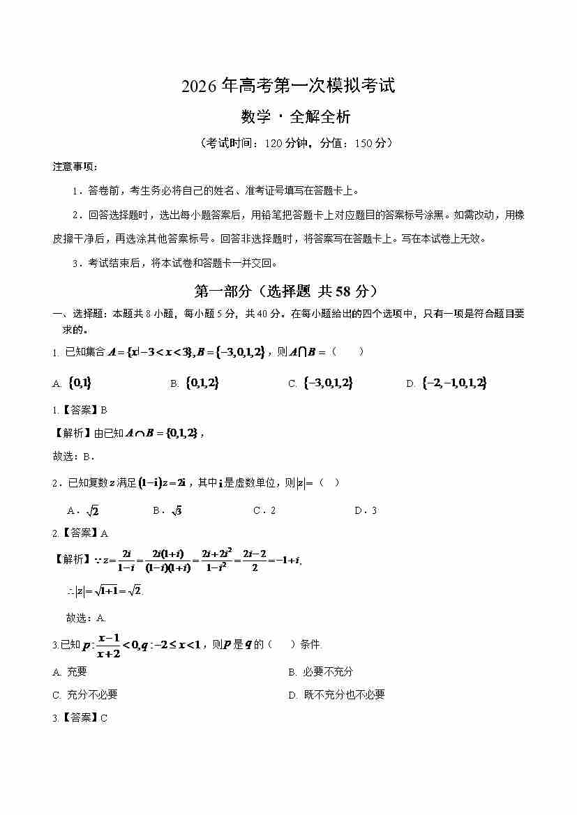 数学一模满分突破03(全国二卷通用)(全解全析)