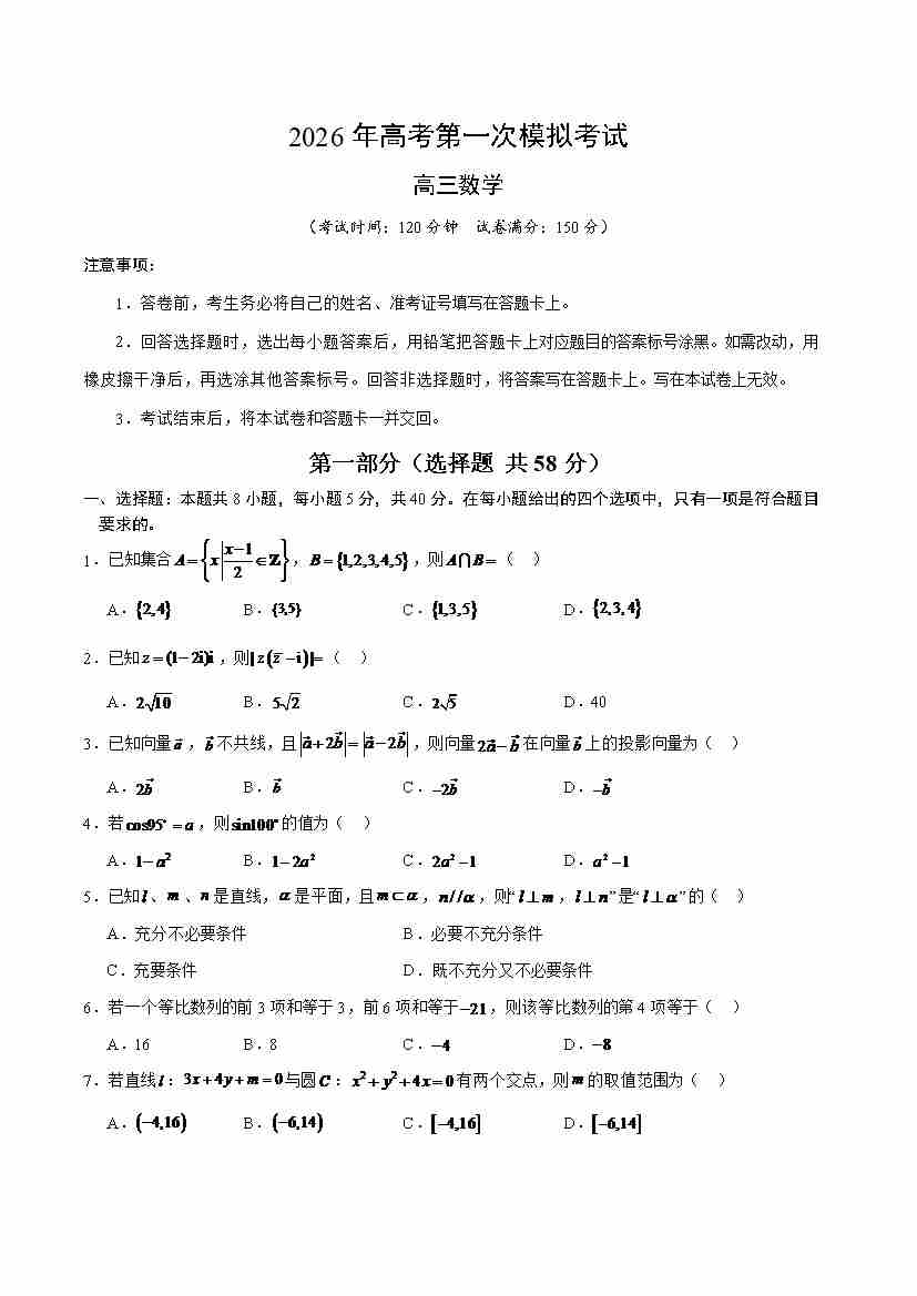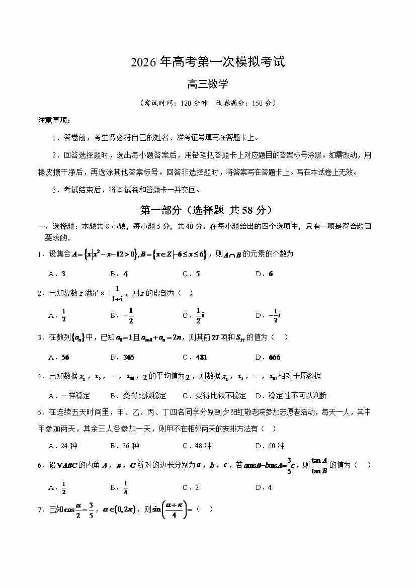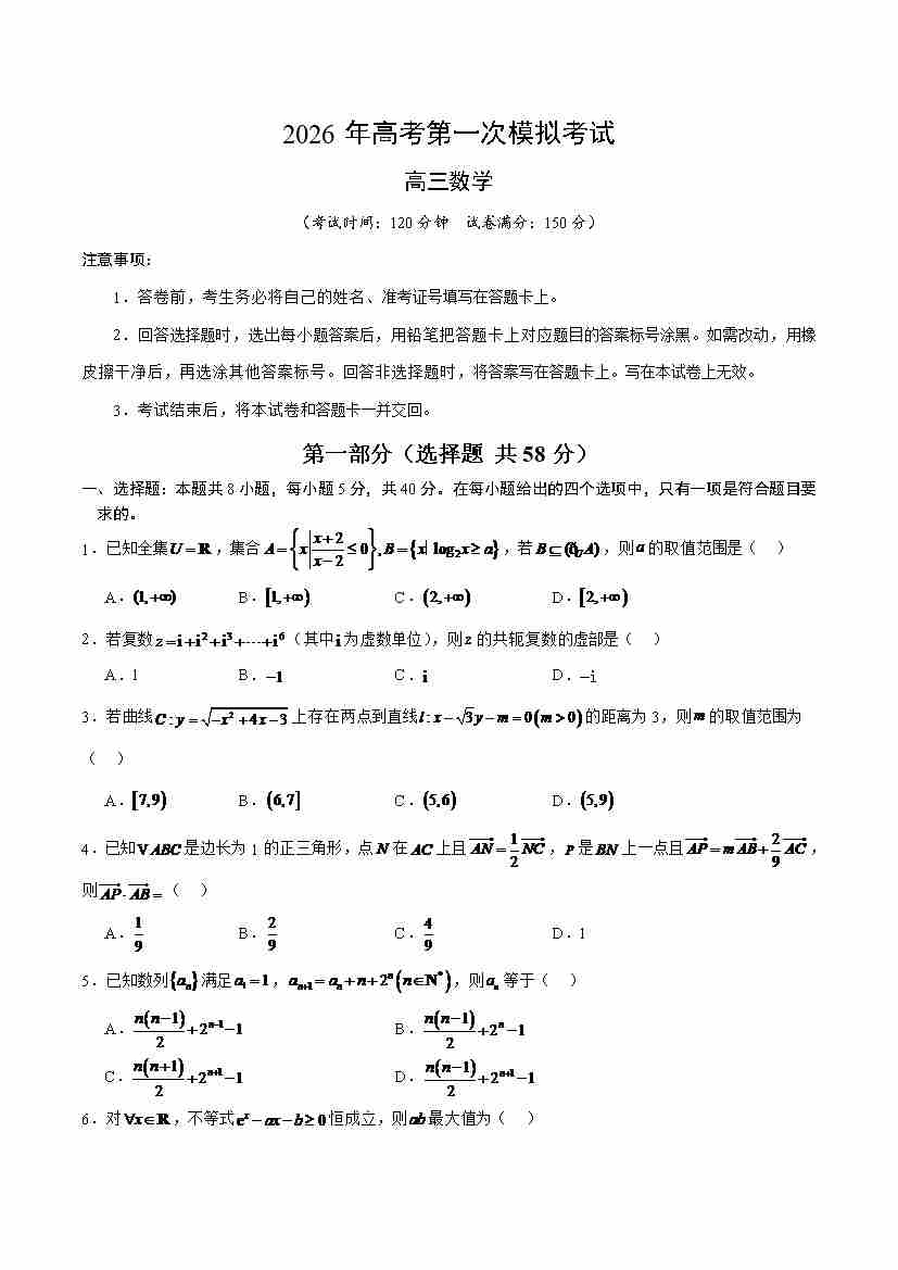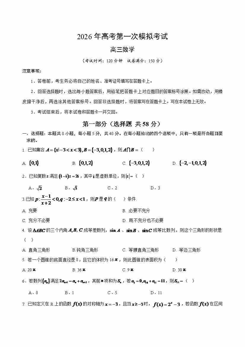 数学一模保分卷(期末适用)02(浙江卷)(浙江卷)(考试版)