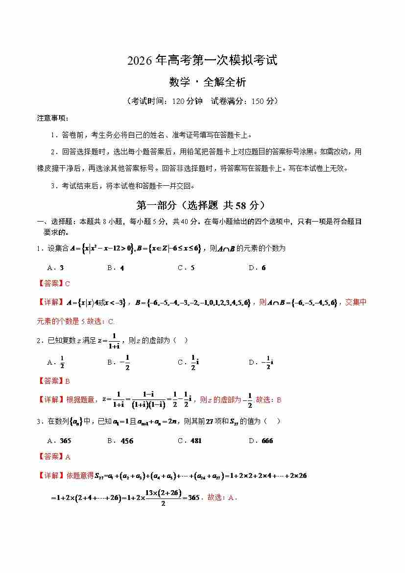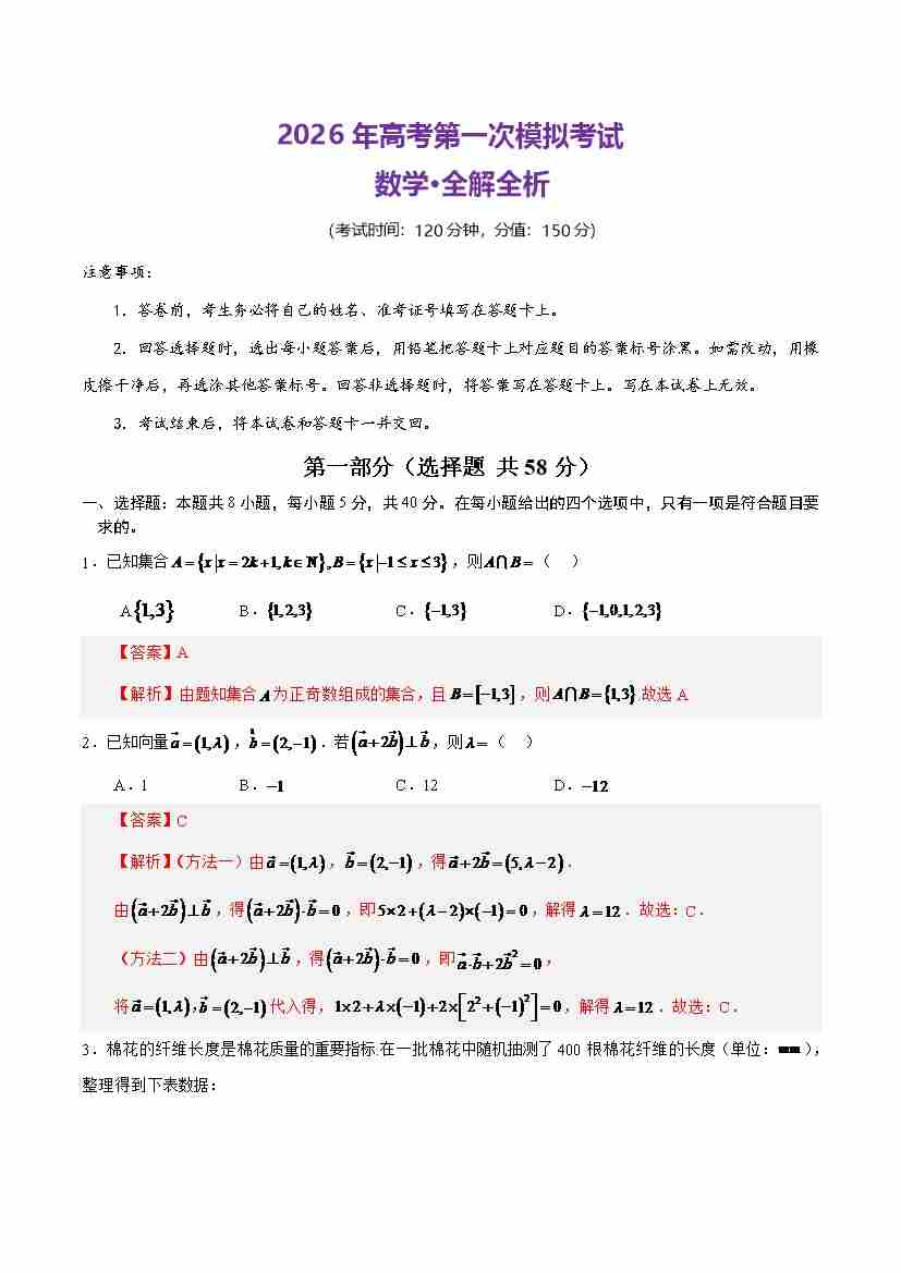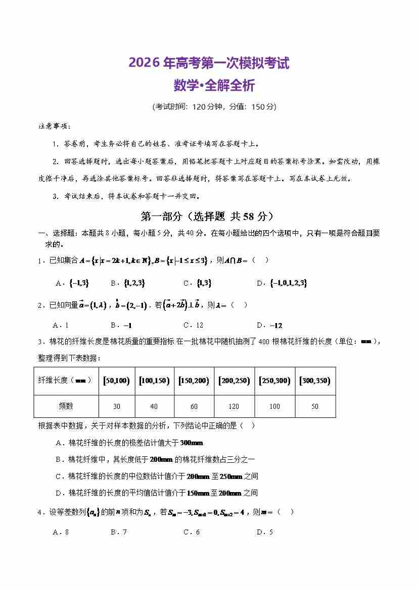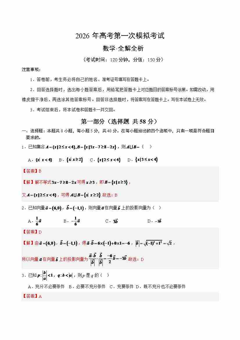 数学一模保分卷(期末适用)02(浙江卷)(浙江卷)(全解全析)