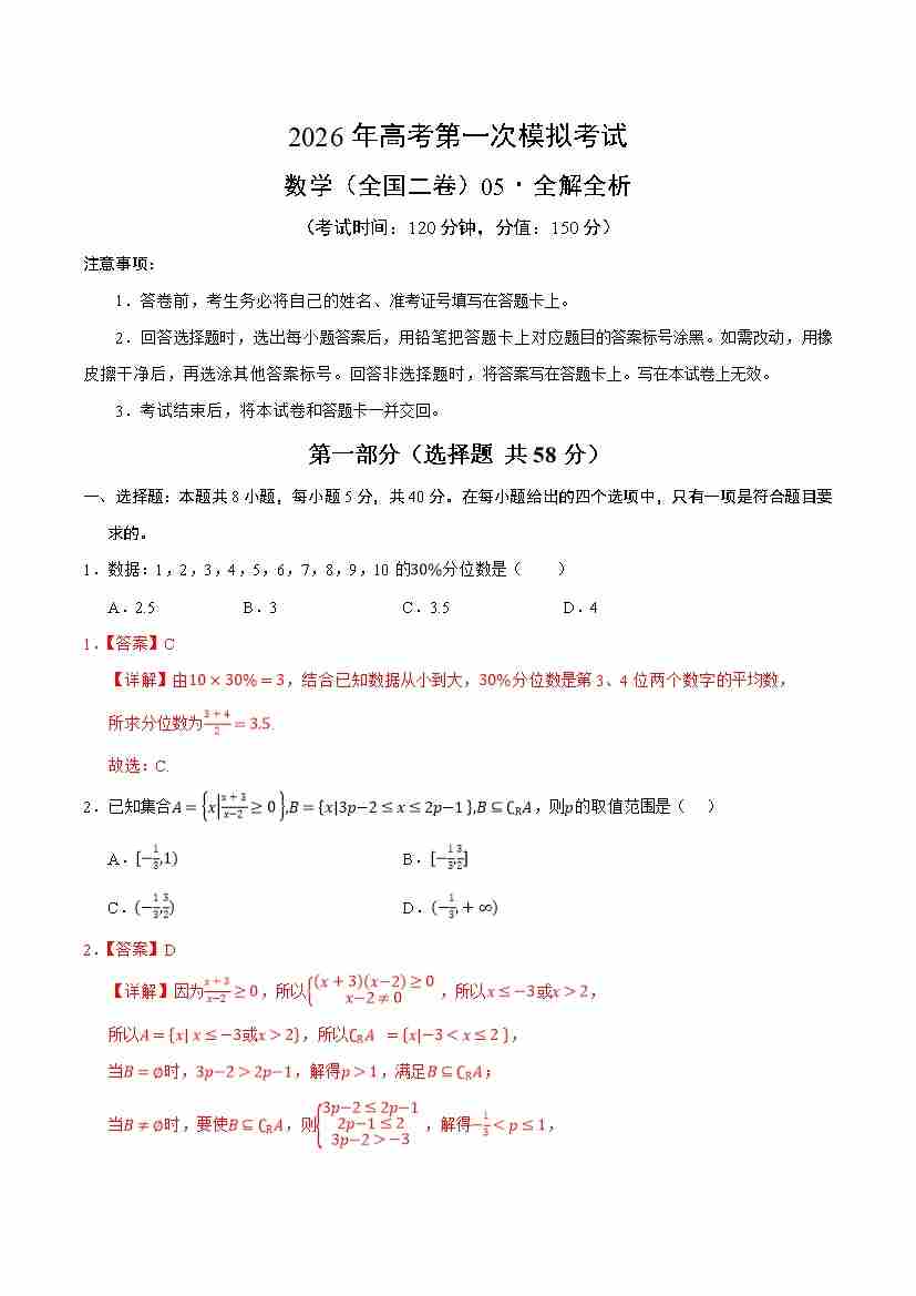 数学一模突破卷05(全国二卷通用)(全解全析)