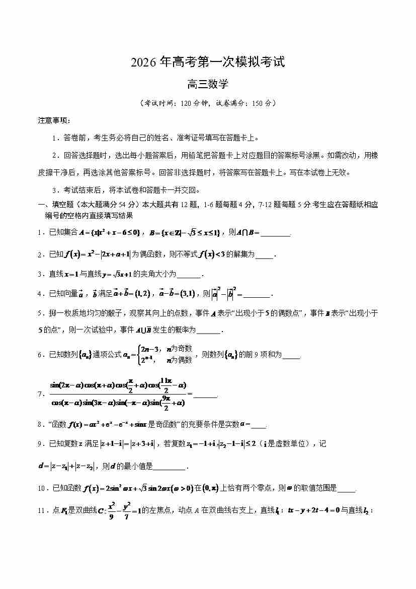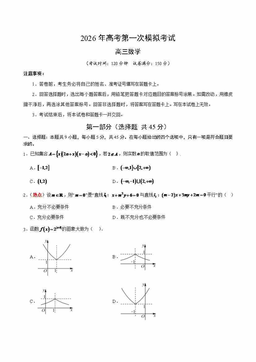 高考第一次模拟考试02(考试版A4)