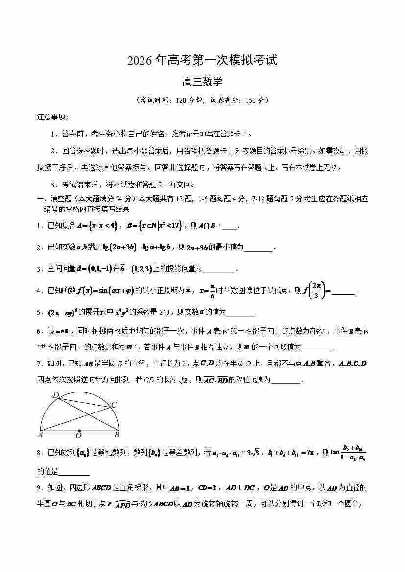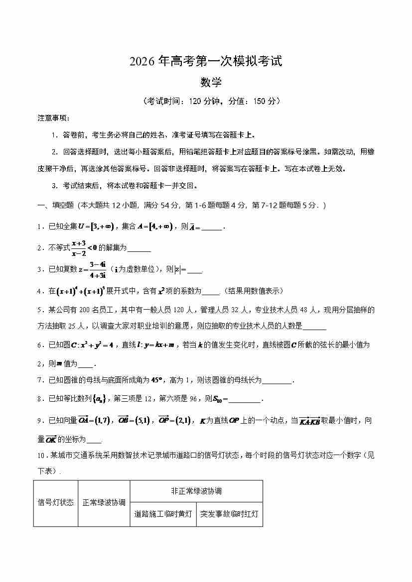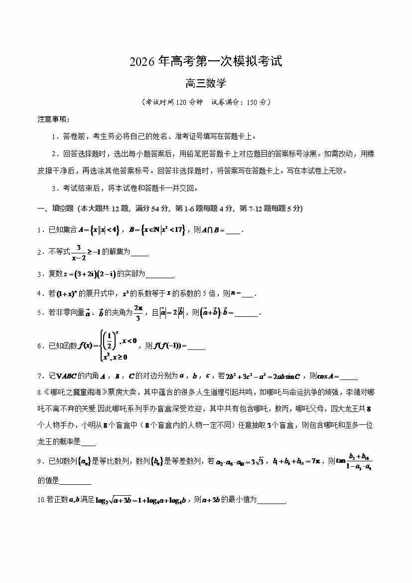 数学一模提分卷03(上海卷)(考试版A4)