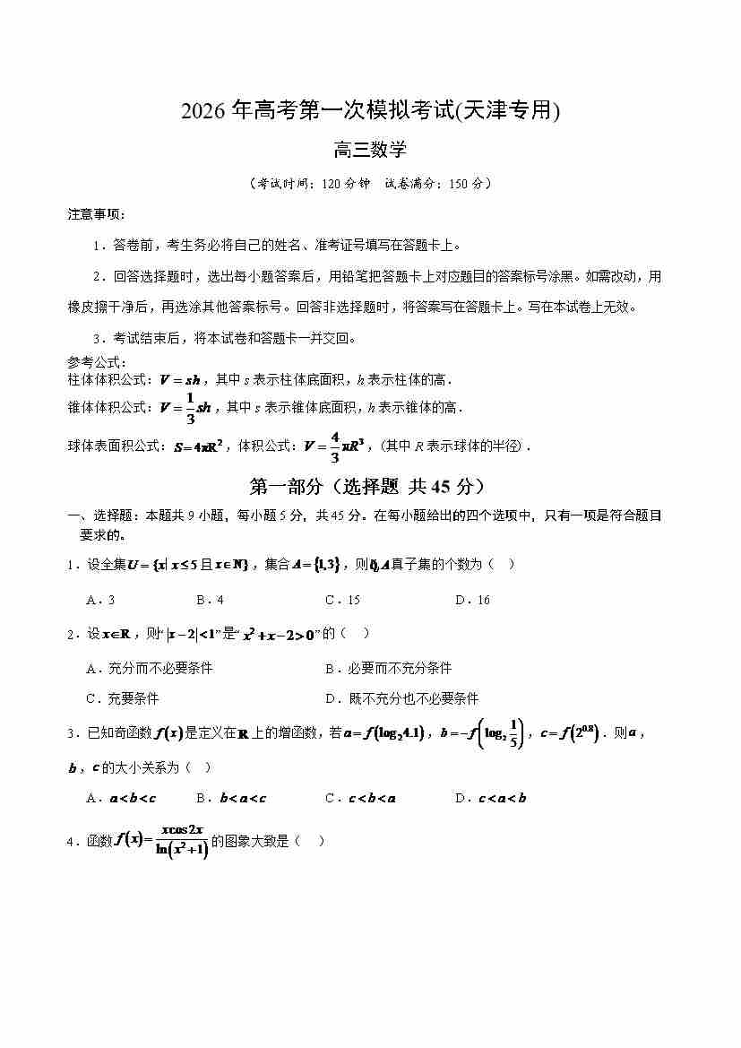 数学一模突破卷04(天津专用)(考试版)