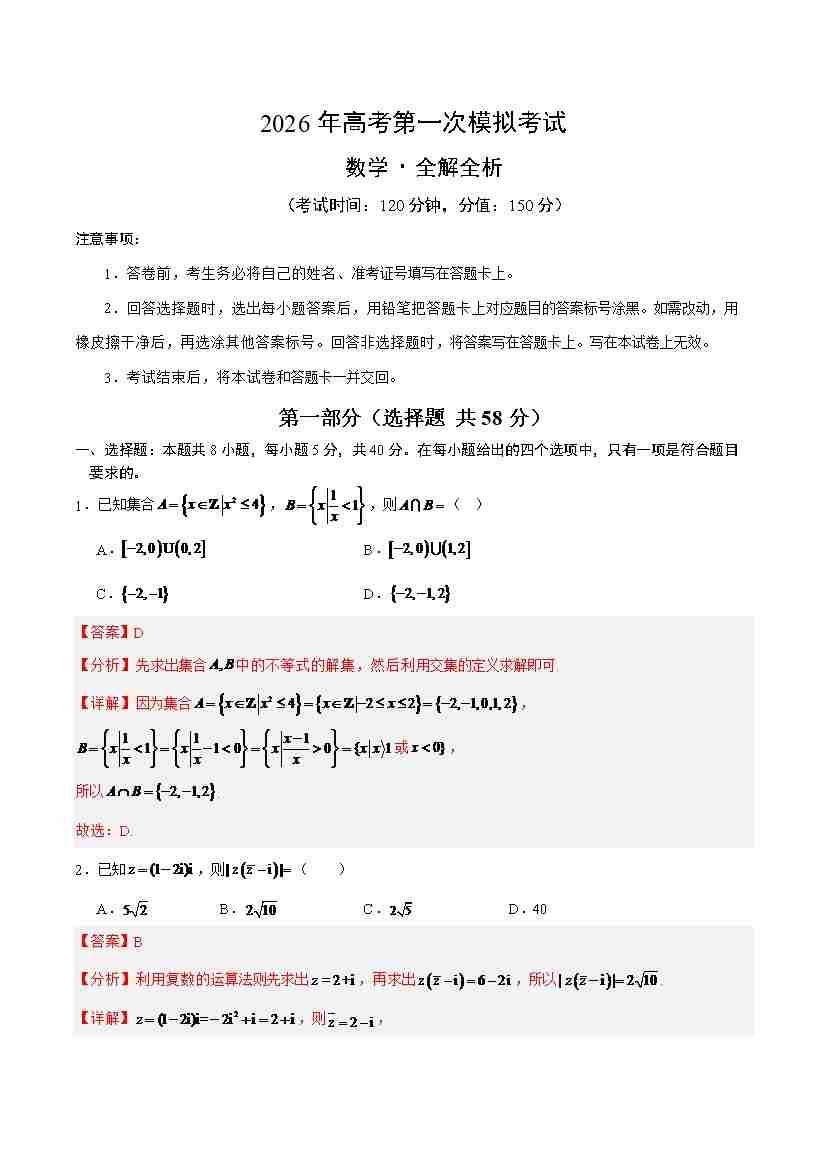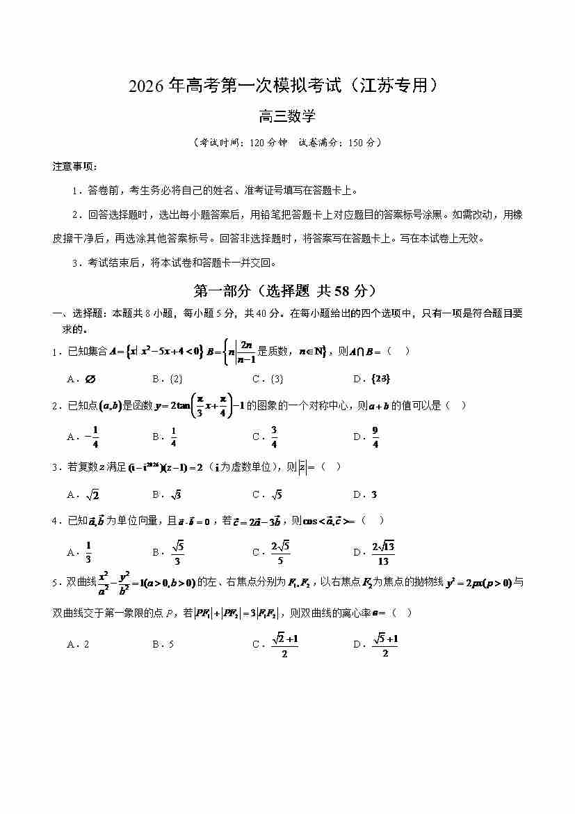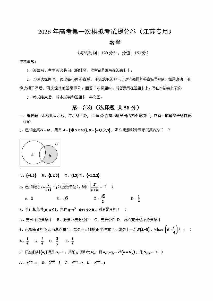 数学一模满分突破卷05(江苏专用)(全解全析)