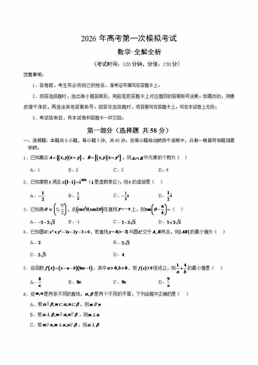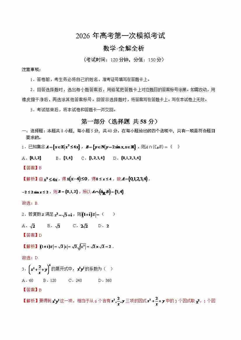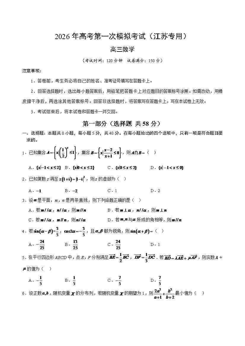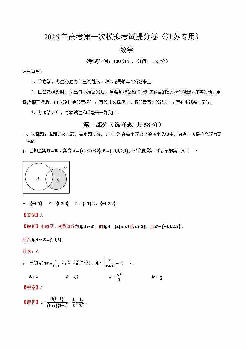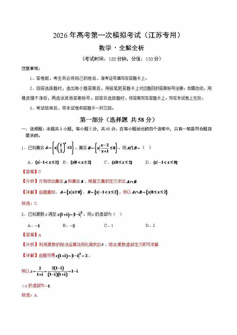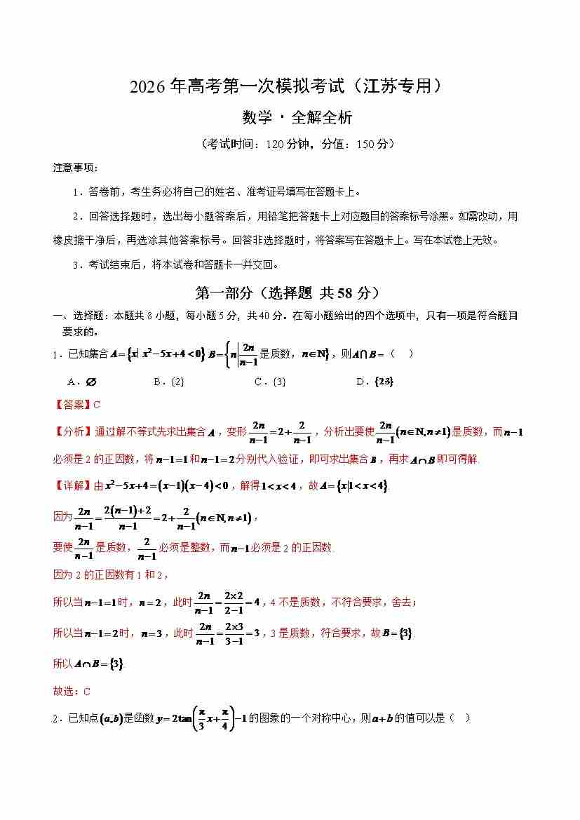 数学一模满分突破卷04(江苏专用)(全解全析)